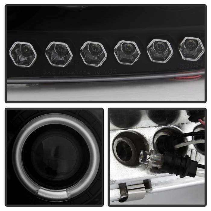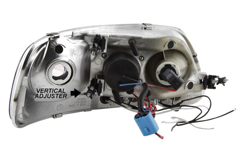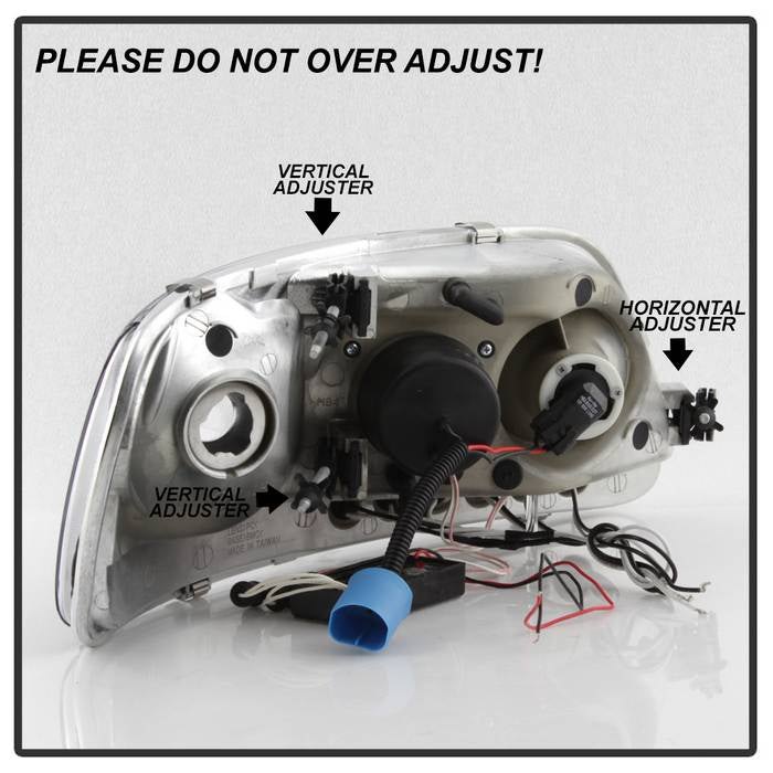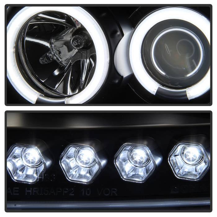 Spyder® - Signature Series Driver and Passenger Side Black Halo Projector Headlights with Parking LEDs, InstallationThese projector headlights will benefit you and your car or truck in 2 ways. First you get superior illumination, which enables better vision in darkness and inclement weather, for safer driving. This is because the bulb in a projector headlight is positioned in front of an elliptical-shaped reflector. Where a conventional parabolic type reflector reflects light outward in a dispersed pattern, the elliptical reflector reflects the light toward a single focal point in front of the bulb. Projector headlights produce a sharper, more focused beam of light with less scatter loss. The second benefit is made possible because of the projector headlight’s smaller size in comparison to a conventional headlight. Without the need for a large parabolic reflector, the stylists at Spyder have used the increased space within the headlight housing to include Halos and LEDs, and work their styling magic to create the one-of-a-kind, custom designed Halo projector headlight with LEDs that you see on this page. Just by replacing your old, dim headlights you’ll gain a safer, more pleasurable driving experience, and give your vehicle an appearance makeover that will result in head turning looks.