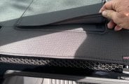 Each Limited Edition DashMat is custom made. DashMat's designers buy your specific vehicle's dashboard, make a custom pattern, and then make samples until they achieve a perfect fit. Unique warp-knit design fabric complements the technical fabrics in newer vehicles. Depending on the exact fitment, any cutouts for sensors (like an A/C sensor) are either already in place or marked on the back for easy cutout. There are also precut slits in the fabric to accommodate your airbags (if any). The deploying airbag will simply peel open the DashMat, not hurtle it into your passenger's face. In-dash speakers are NOT cut out of dash covers because the fabrics do not distort sounds. DashMat-like fabrics are often used as speaker covers by stereo component manufacturers.