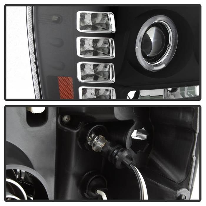These projector headlights will benefit you and your car or truck in 2 ways. First you get superior illumination, which enables better vision in darkness and inclement weather, for safer driving. This is because the bulb in a projector headlight is positioned in front of an elliptical-shaped reflector. Where a conventional parabolic type reflector reflects light outward in a dispersed pattern, the elliptical reflector reflects the light toward a single focal point in front of the bulb. Projector headlights produce a sharper, more focused beam of light with less scatter loss. The second benefit is made possible because of the projector headlight’s smaller size in comparison to a conventional headlight. Without the need for a large parabolic reflector, the stylists at Spyder have used the increased space within the headlight housing to include Halos and LEDs, and work their styling magic to create the one-of-a-kind, custom designed Halo projector headlight with LEDs that you see on this page. Just by replacing your old, dim headlights you’ll gain a safer, more pleasurable driving experience, and give your vehicle an appearance makeover that will result in head turning looks.