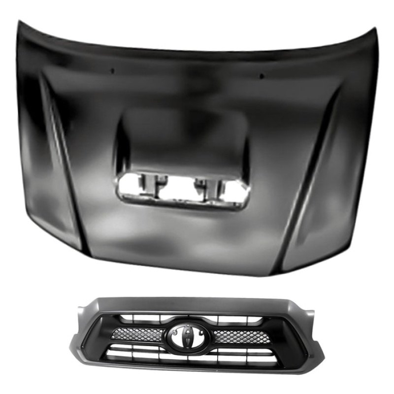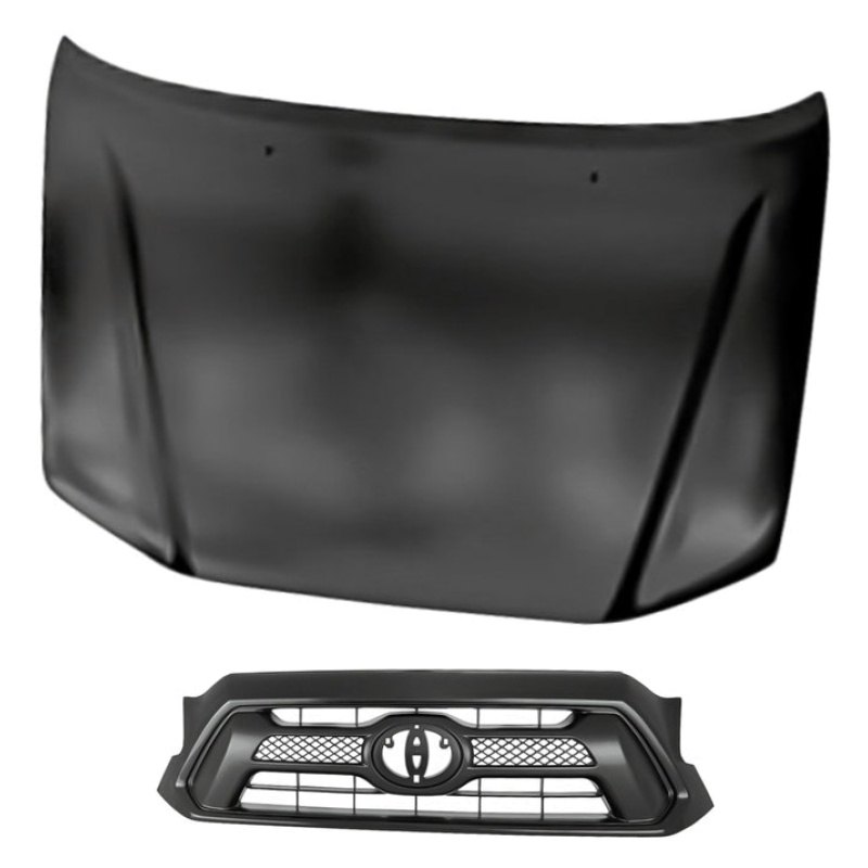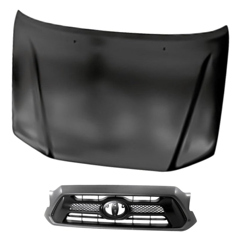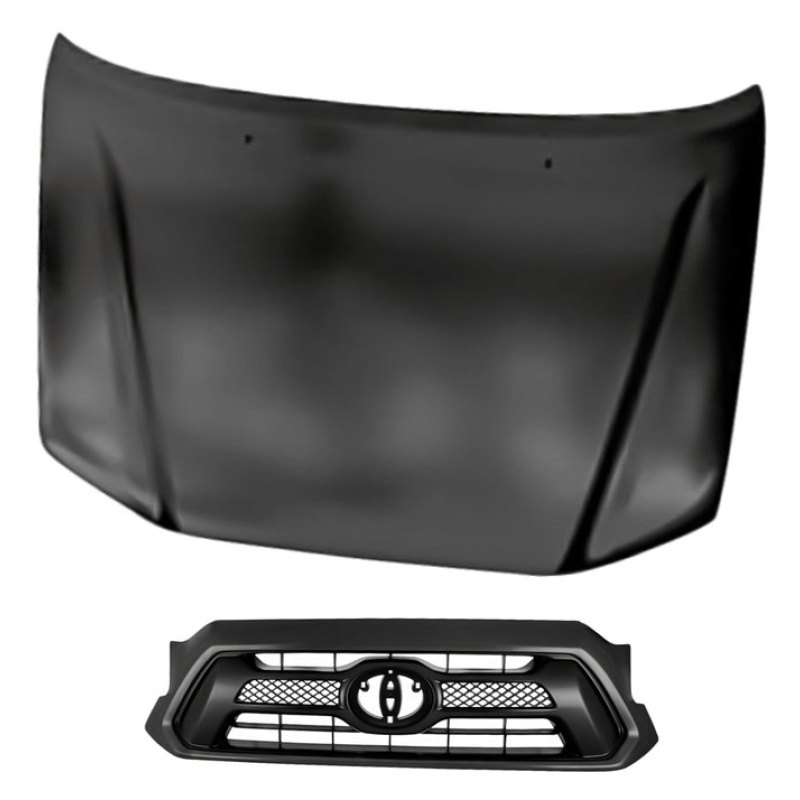 Toyota Tacoma 2012, 2-Piece (Hood Panel, Grille) by Replacement. When your hood's seen better days, you need a replacement that's up to the task. The Replacement brand's hoods are made to perfectly match your truck's original equipment. This panel will line up just right with your truck bed, no awkward gaps or alignment headaches. Durability is crucial for hoods. This one's built to handle the tough stuff, from the elements to impacts that come with hauling construction materials or moving furniture.
