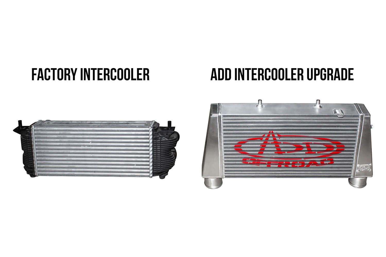 Intercooler Upgrade Kit by ADD®. The A.D.D. Intercooler is shrouded with 2 electric fans and includes all of the brackets and hardware for a complete installation. The unit bolts behind the front bumper of the truck. This product is made of high-quality materials to serve you for years to come. Designed using state-of-the-art technology and with customers in mind. It will meet your needs and deliver great quality at an affordable cost.
