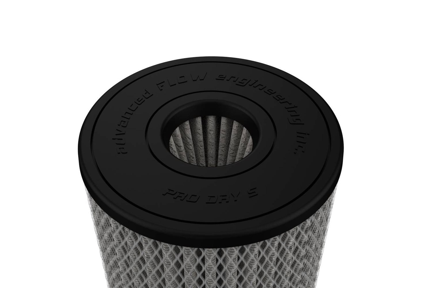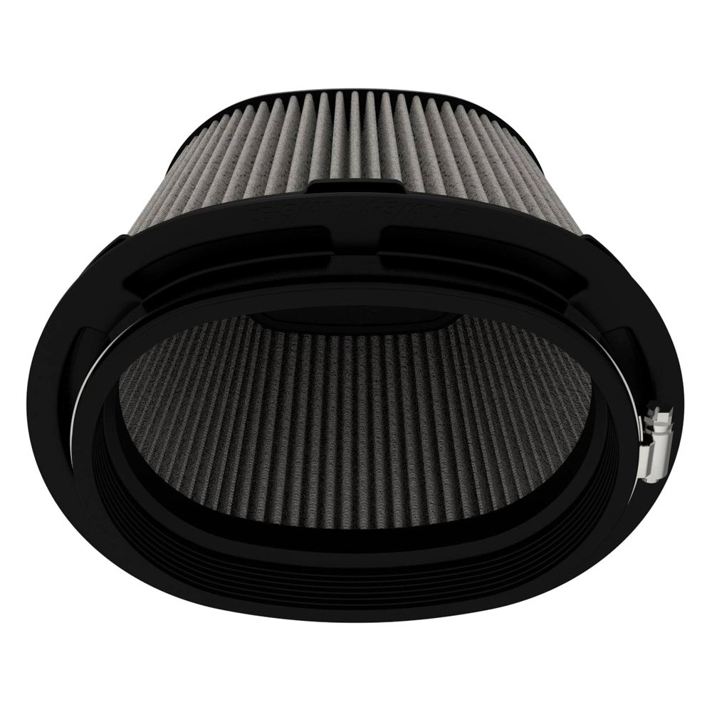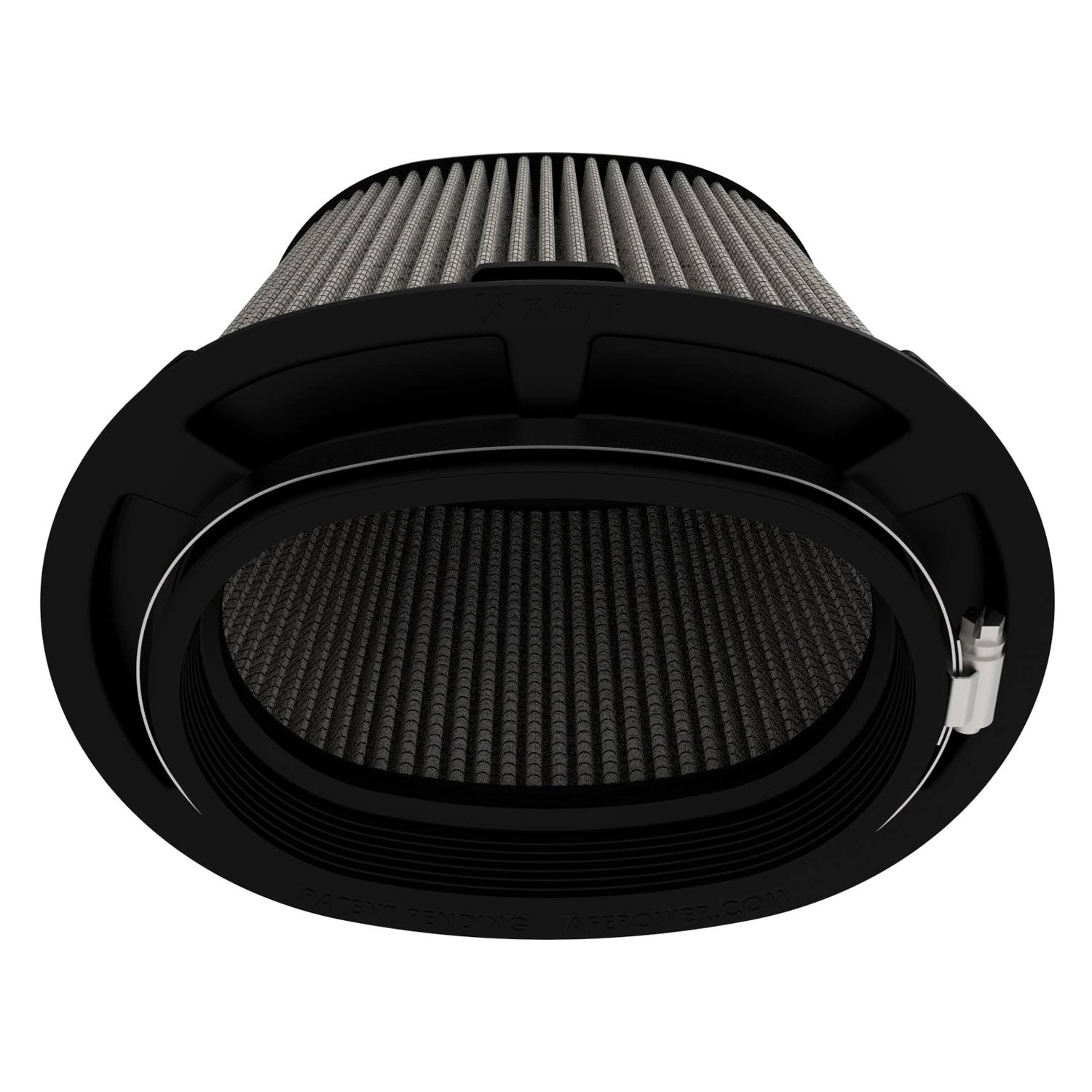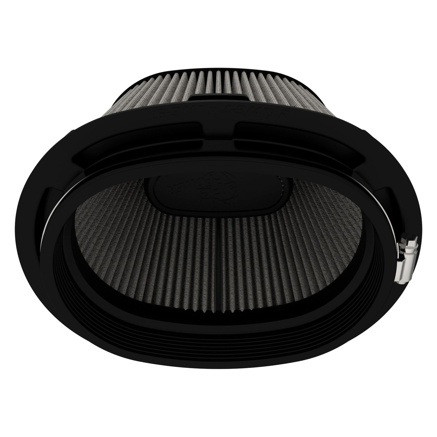 Magnum Flow® Pro Dry S Oval Tapered Gray Air Filter by aFe®. These high flow Pro DRY S air filters are constructed with 100% polyurethane on all sides and will out flow the stock paper filters for improved performance. With three layers of progressively finer mesh synthetic media between 100% polyurethane top and base, this high flow, "oil-free" conical performance filter provides maximum convenience and easy maintenance with excellent airflow. Washable and reusable for multiple cleanings, the tall open evenly spaced pleats provide excellent dust holding capacity for longer service cycle between cleanings. Pliable polyurethane flange with integrated bumps insures tight, no leak seal over the life of the filter. This filter has a 99.2% filter efficiency.