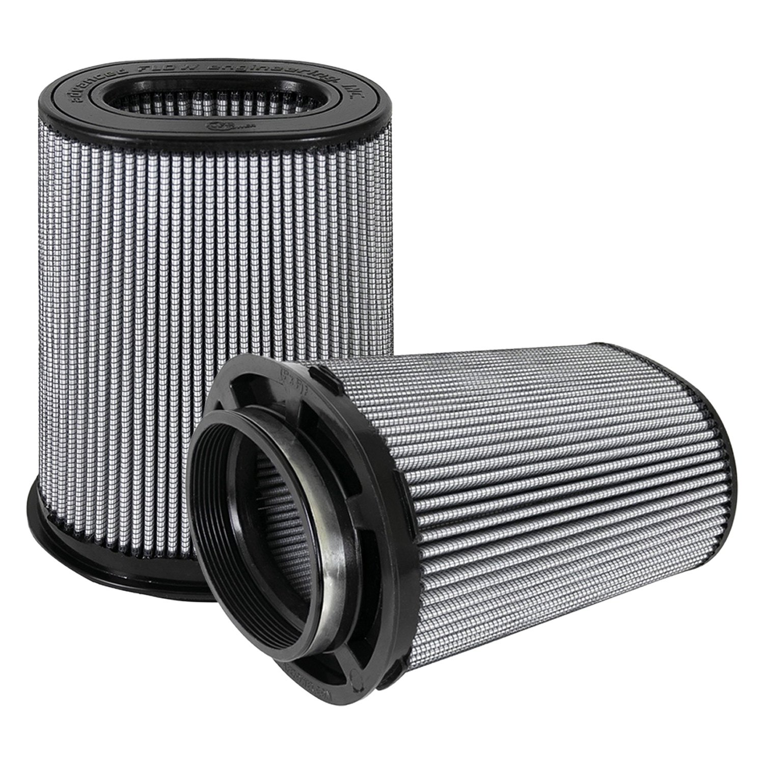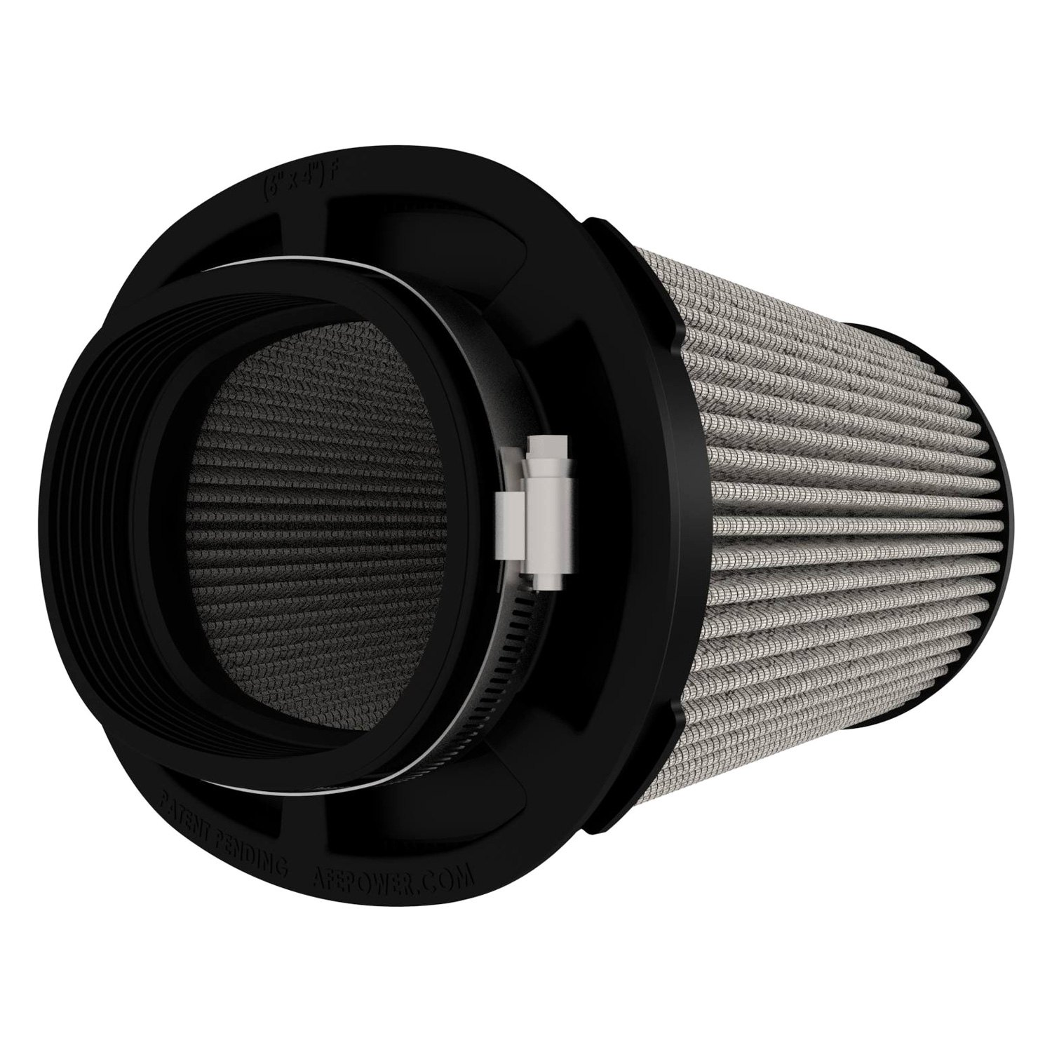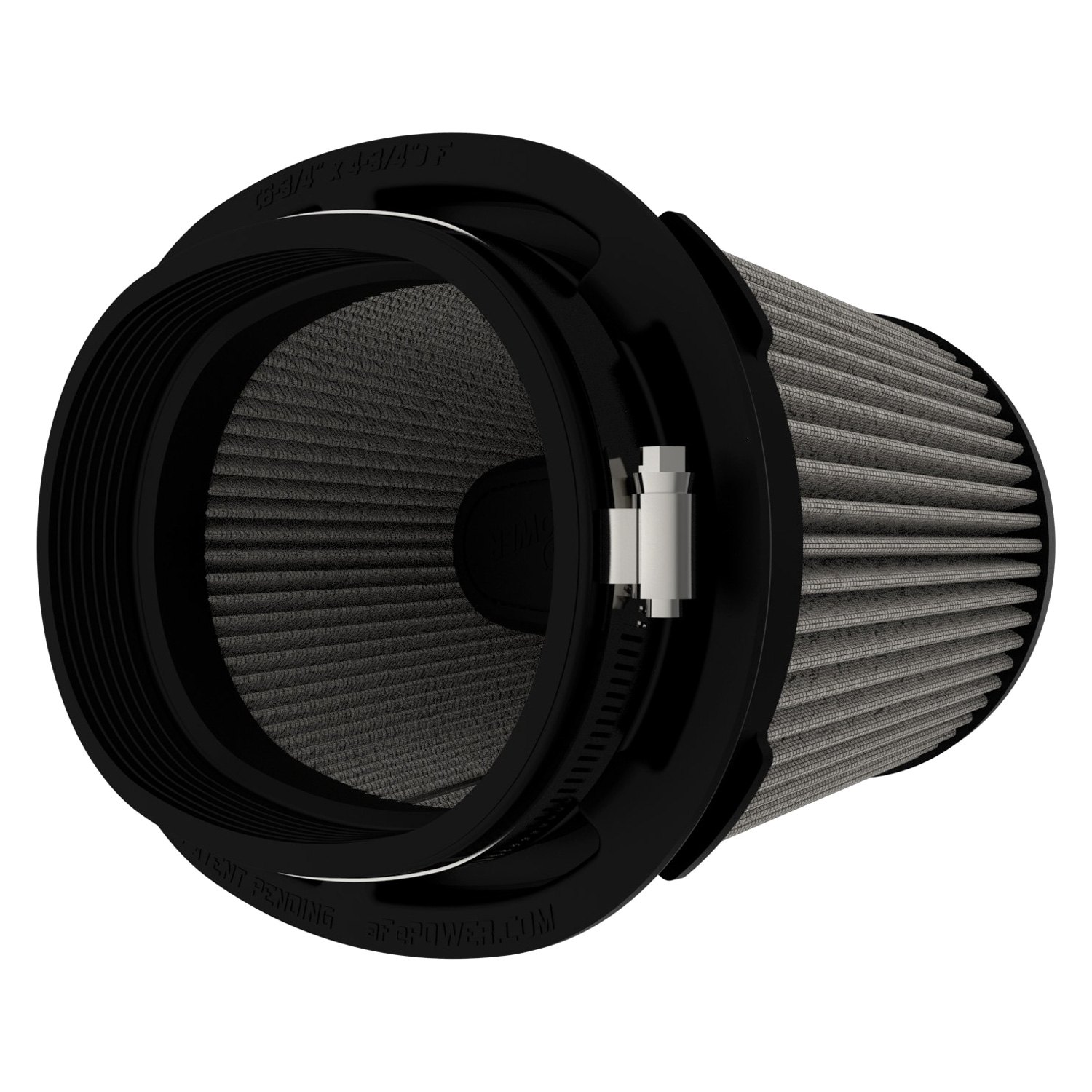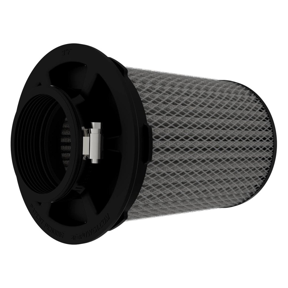 Magnum Flow® Pro Dry S Oval Tapered Gray Air Filter by aFe®. These high flow Pro DRY S air filters are constructed with 100% polyurethane on all sides and will out flow the stock paper filters for improved performance. With three layers of progressively finer mesh synthetic media between 100% polyurethane top and base, this high flow, "oil-free" conical performance filter provides maximum convenience and easy maintenance with excellent airflow. Washable and reusable for multiple cleanings, the tall open evenly spaced pleats provide excellent dust holding capacity for longer service cycle between cleanings. Pliable polyurethane flange with integrated bumps insures tight, no leak seal over the life of the filter. This filter has a 99.2% filter efficiency.