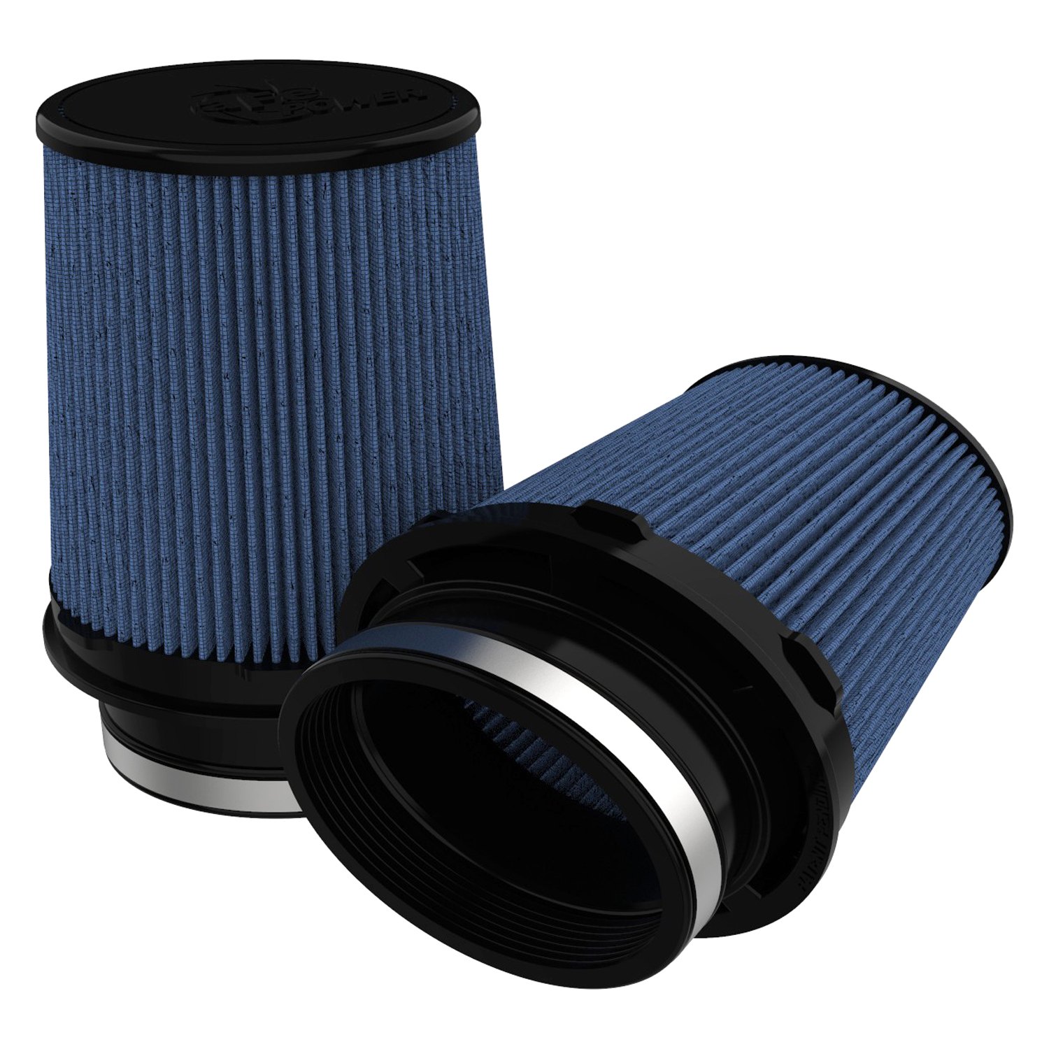Magnum Flow® Pro 5R Oval Tapered Blue Air Filter (Pair) (24-90111-MA) by aFe®. These high flow Pro 5R air filters are constructed with 100% polyurethane on all sides and will out flow the stock paper filters for improved performance. Five layers of progressively finer cotton media provides maximum air flow. Washable and reusable for multiple cleaning cycles, the tall, open and evenly spaced filter pleats provide excellent dust holding capacity for longer service cycle between cleanings. An integrated urethane bump seal insures a tight, leak-free seal over the life of the filter. The aFe filter system increased air flow 25% over the factory air filter set increasing horsepower, torque and improving throttle response.