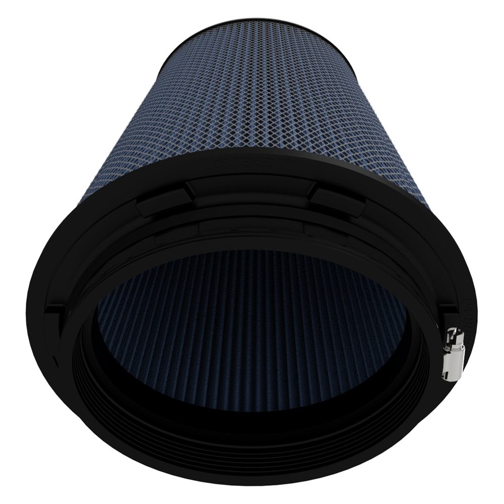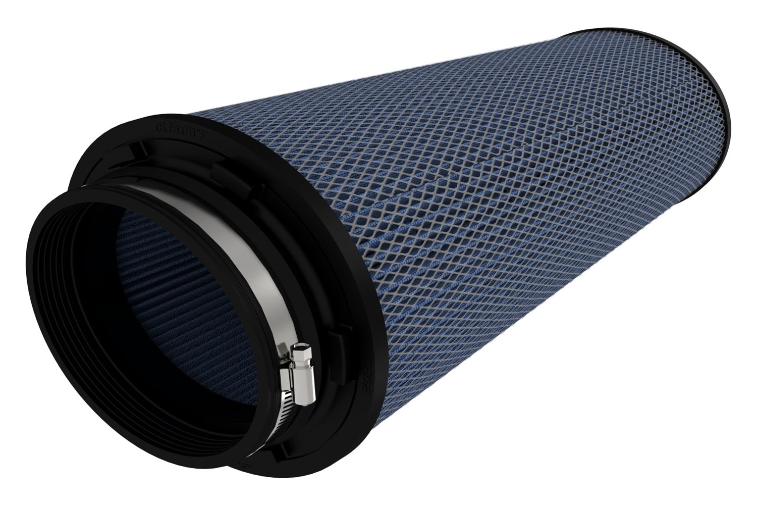 Magnum Flow® Pro 5R Oval Tapered Blue Air Filter (24-90202R) by aFe®. These high flow Pro 5R air filters are constructed with 100% polyurethane on all sides and will out flow the stock paper filters for improved performance. Five layers of progressively finer cotton media provides maximum air flow. Washable and reusable for multiple cleaning cycles, the tall, open and evenly spaced filter pleats provide excellent dust holding capacity for longer service cycle between cleanings. An integrated urethane bump seal insures a tight, leak-free seal over the life of the filter. The aFe filter system increased air flow 25% over the factory air filter set increasing horsepower, torque and improving throttle response.