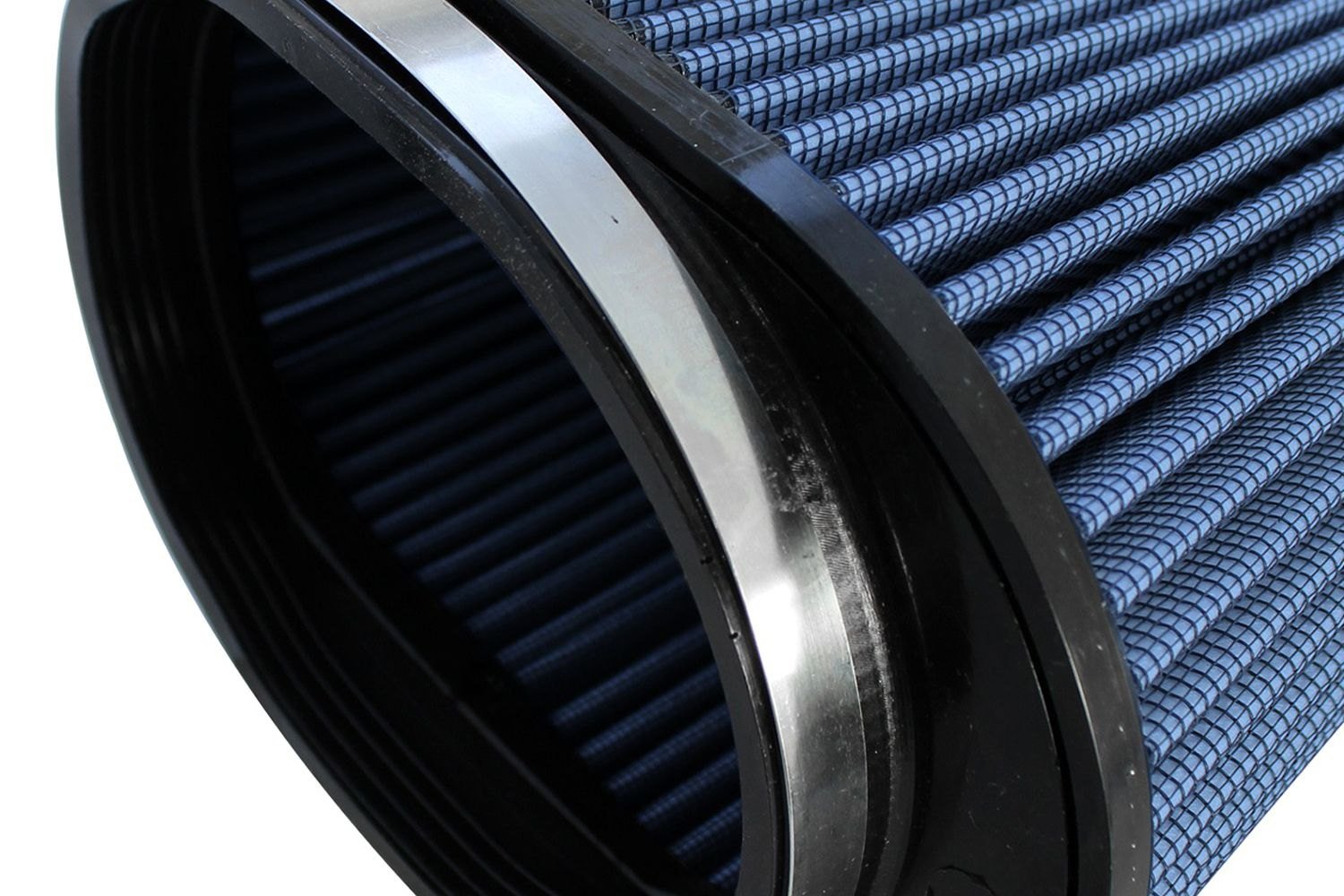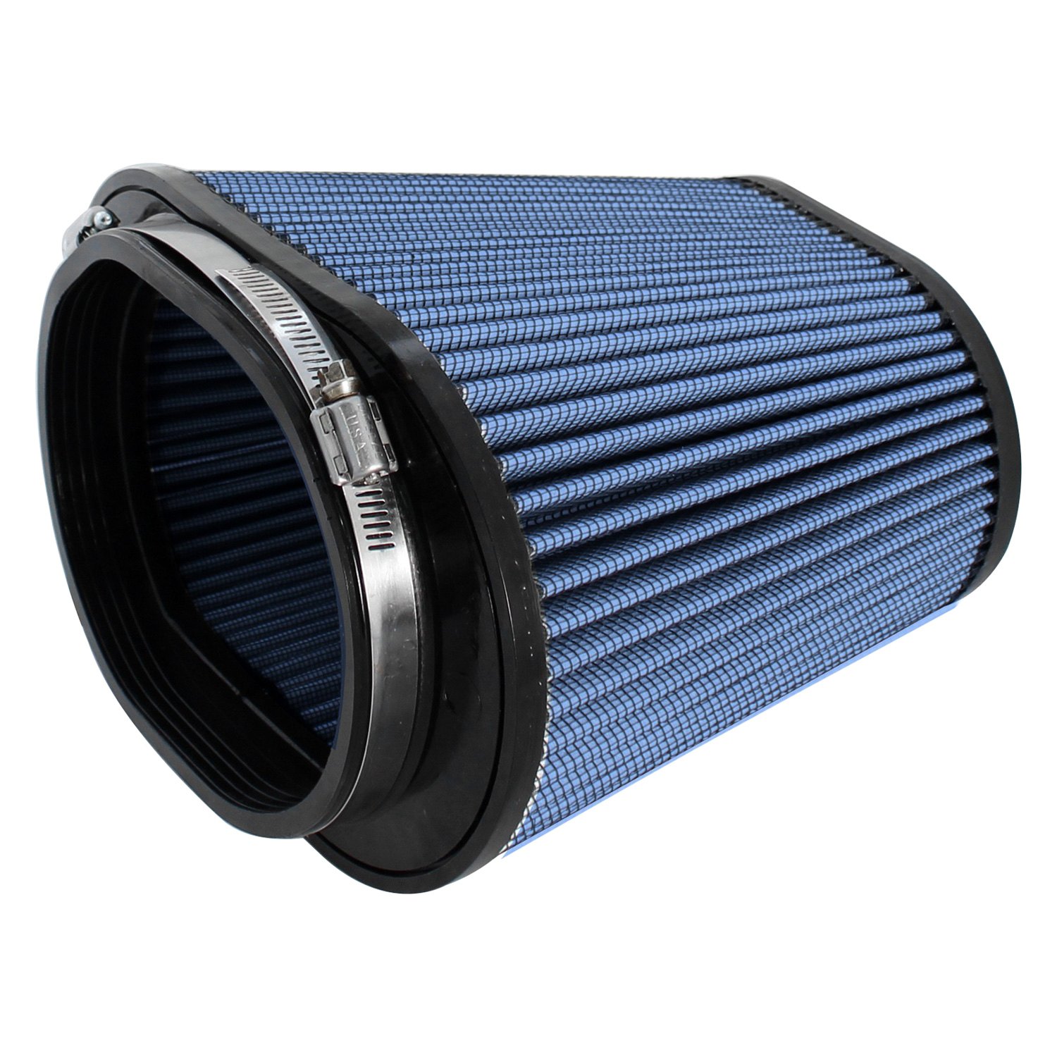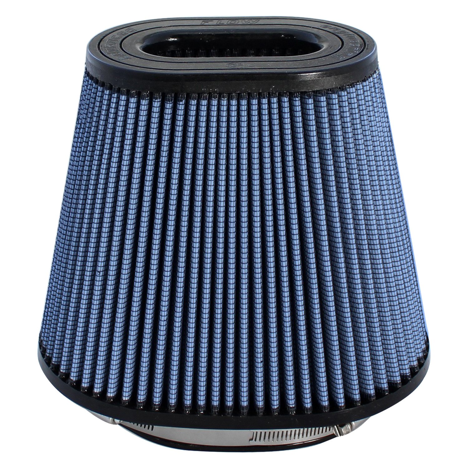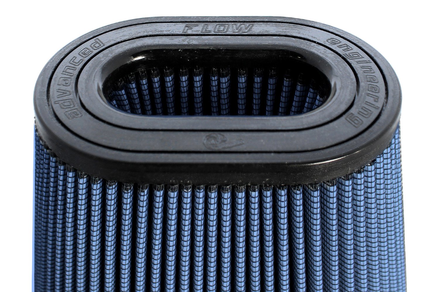 Magnum Flow® Pro 5R Oval Tapered Blue Air Filter (24-91070) by aFe®. These high flow Pro 5R air filters are constructed with 100% polyurethane on all sides and will out flow the stock paper filters for improved performance. Five layers of progressively finer cotton media provides maximum air flow. Washable and reusable for multiple cleaning cycles, the tall, open and evenly spaced filter pleats provide excellent dust holding capacity for longer service cycle between cleanings. An integrated urethane bump seal insures a tight, leak-free seal over the life of the filter. The aFe filter system increased air flow 25% over the factory air filter set increasing horsepower, torque and improving throttle response.