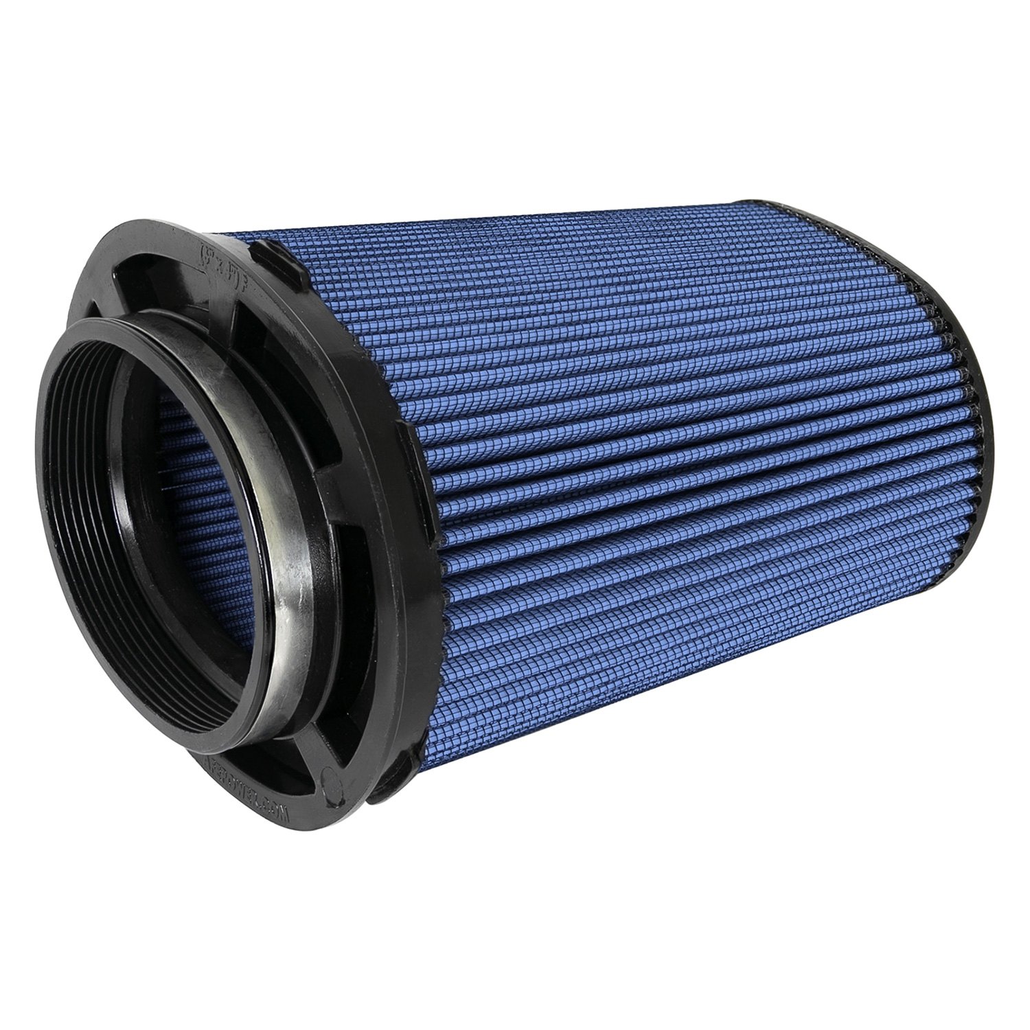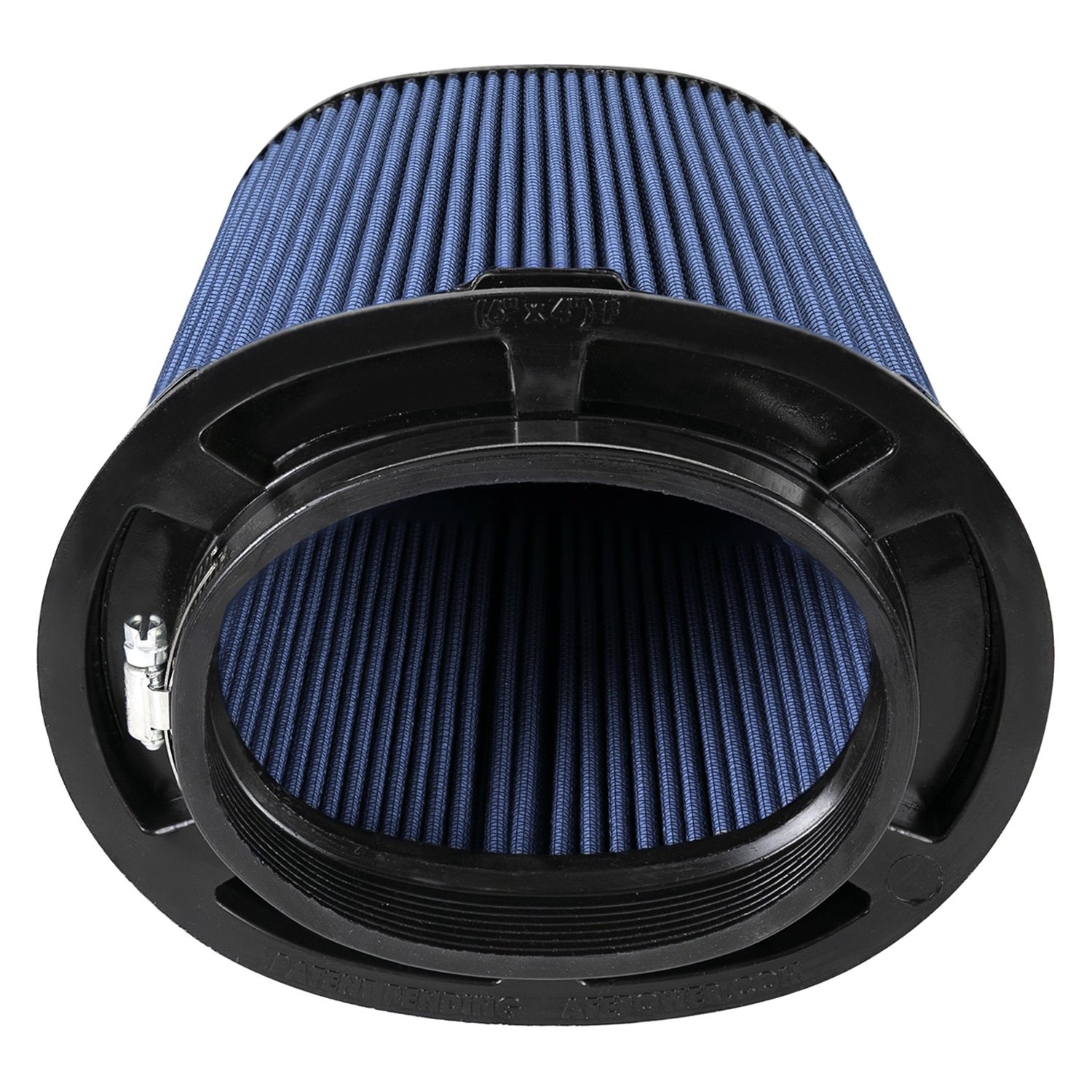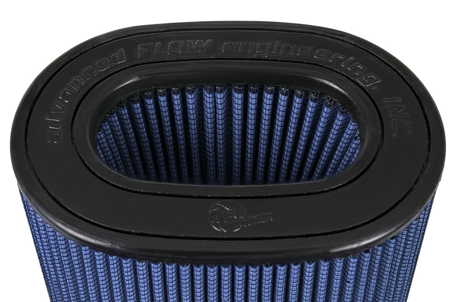 Magnum Flow® Pro 5R Oval Tapered Blue Air Filter (Pair) (24-91136-MA) by aFe®. These high flow Pro 5R air filters are constructed with 100% polyurethane on all sides and will out flow the stock paper filters for improved performance. Five layers of progressively finer cotton media provides maximum air flow. Washable and reusable for multiple cleaning cycles, the tall, open and evenly spaced filter pleats provide excellent dust holding capacity for longer service cycle between cleanings. An integrated urethane bump seal insures a tight, leak-free seal over the life of the filter. The aFe filter system increased air flow 25% over the factory air filter set increasing horsepower, torque and improving throttle response.