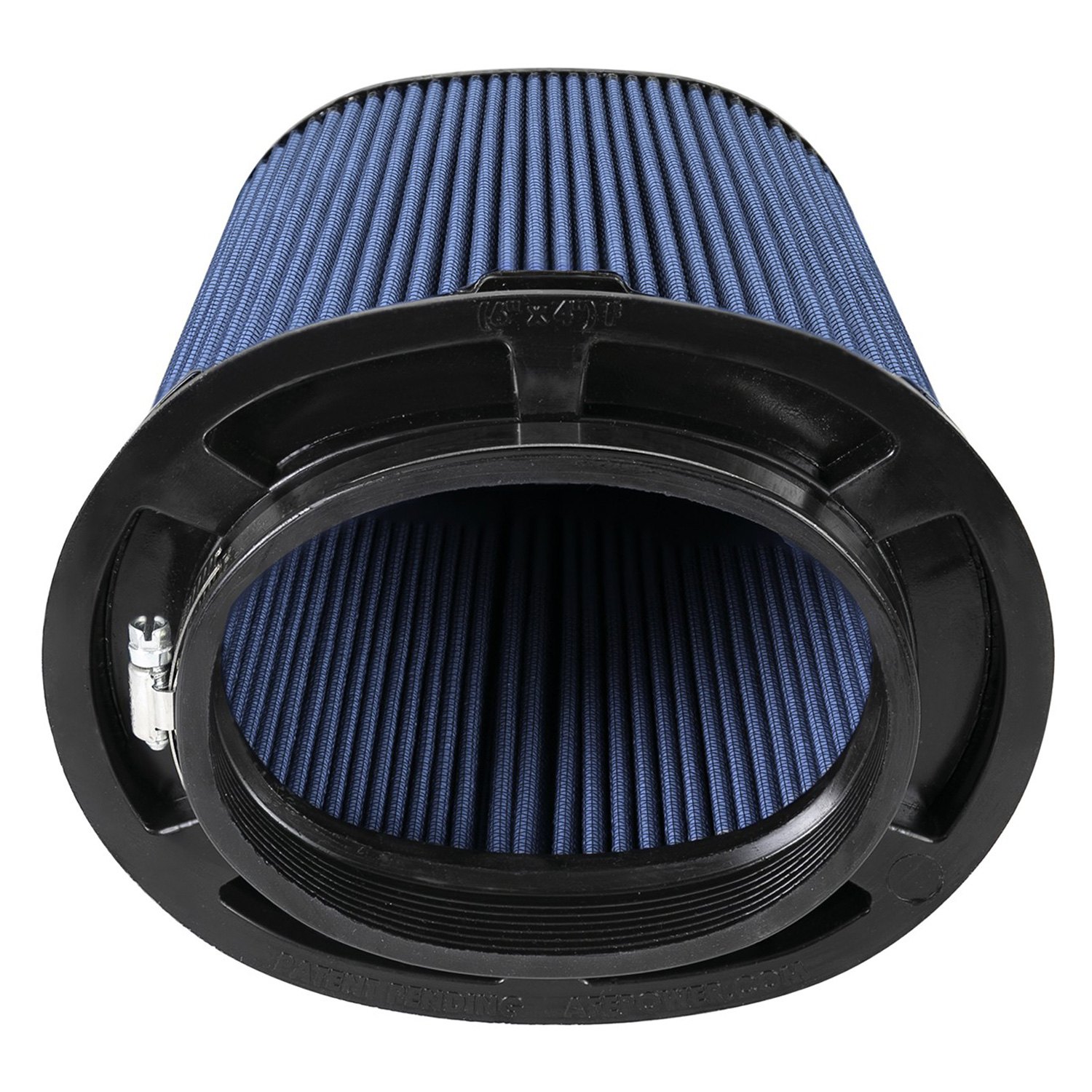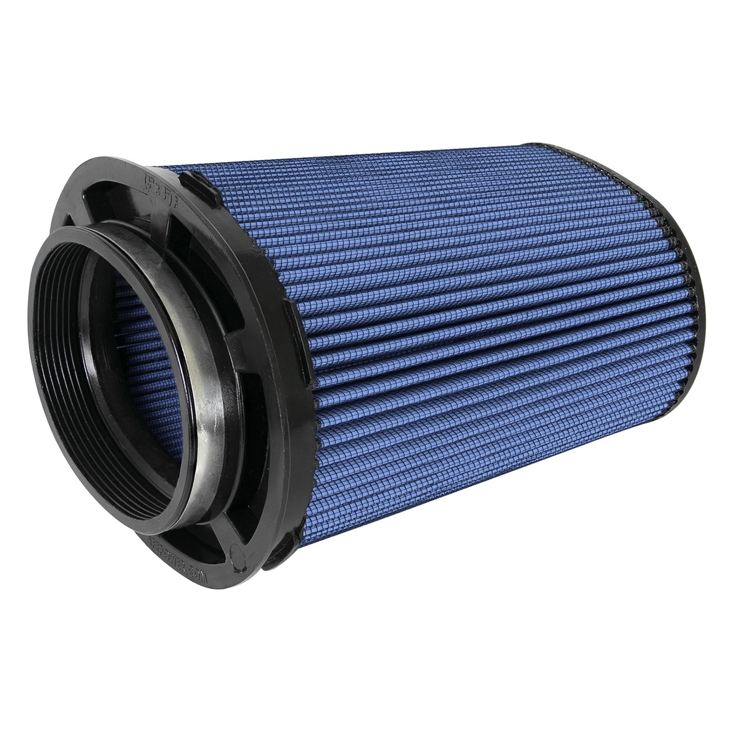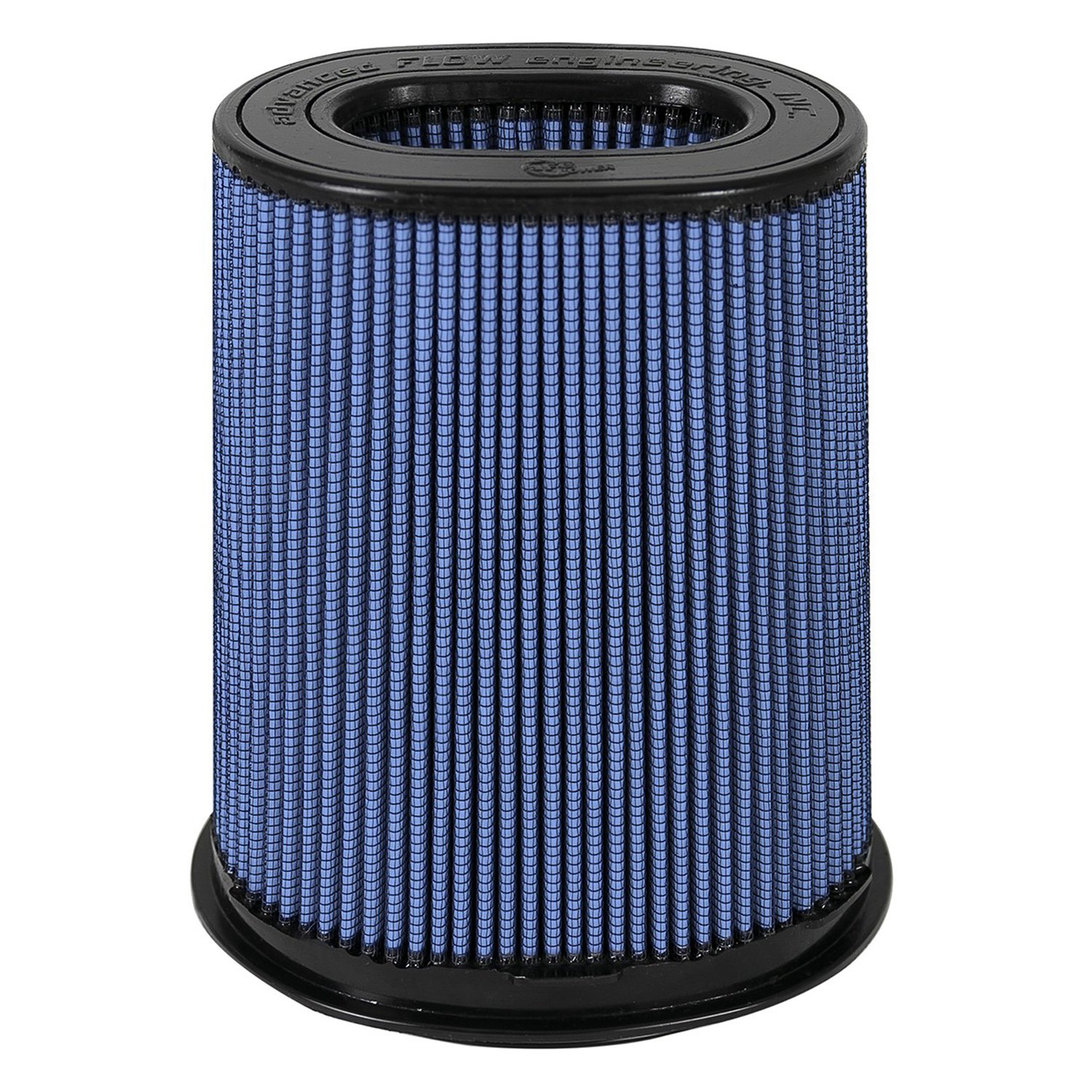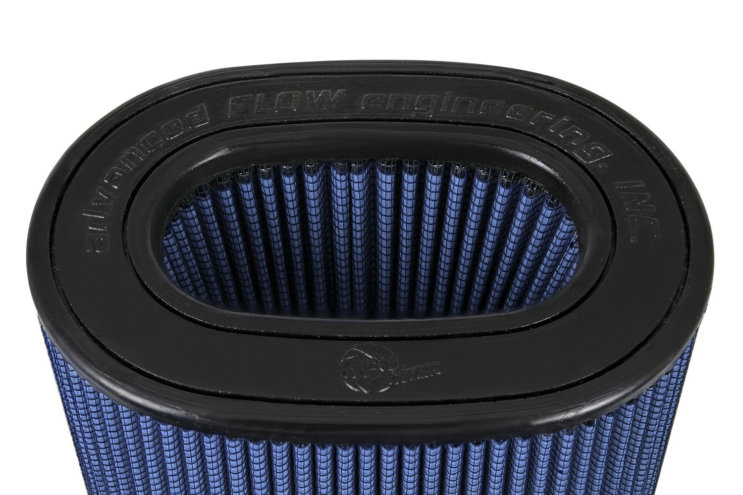 Magnum Flow® Pro 5R Oval Tapered Blue Air Filter (24-91136) by aFe®. These high flow Pro 5R air filters are constructed with 100% polyurethane on all sides and will out flow the stock paper filters for improved performance. Five layers of progressively finer cotton media provides maximum air flow. Washable and reusable for multiple cleaning cycles, the tall, open and evenly spaced filter pleats provide excellent dust holding capacity for longer service cycle between cleanings. An integrated urethane bump seal insures a tight, leak-free seal over the life of the filter. The aFe filter system increased air flow 25% over the factory air filter set increasing horsepower, torque and improving throttle response.