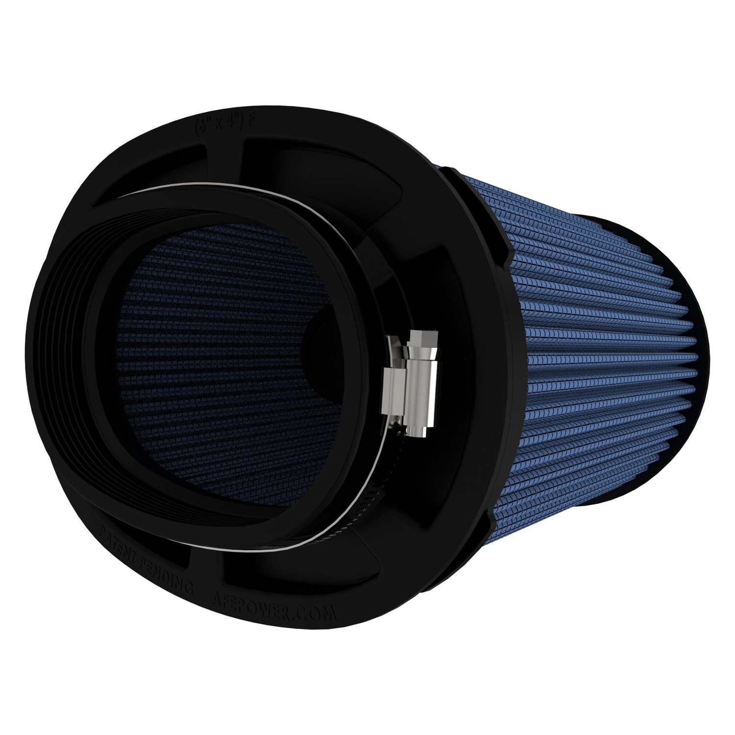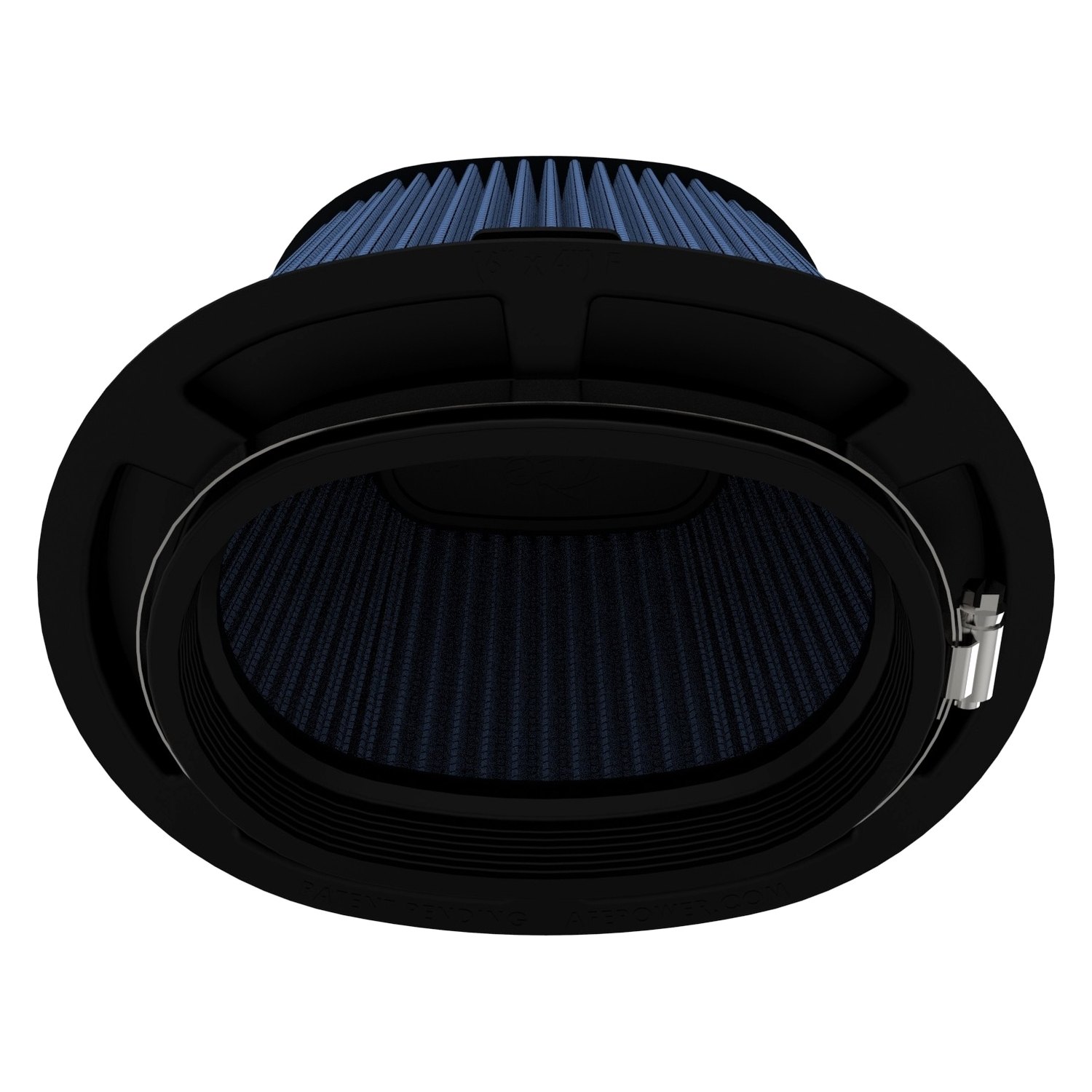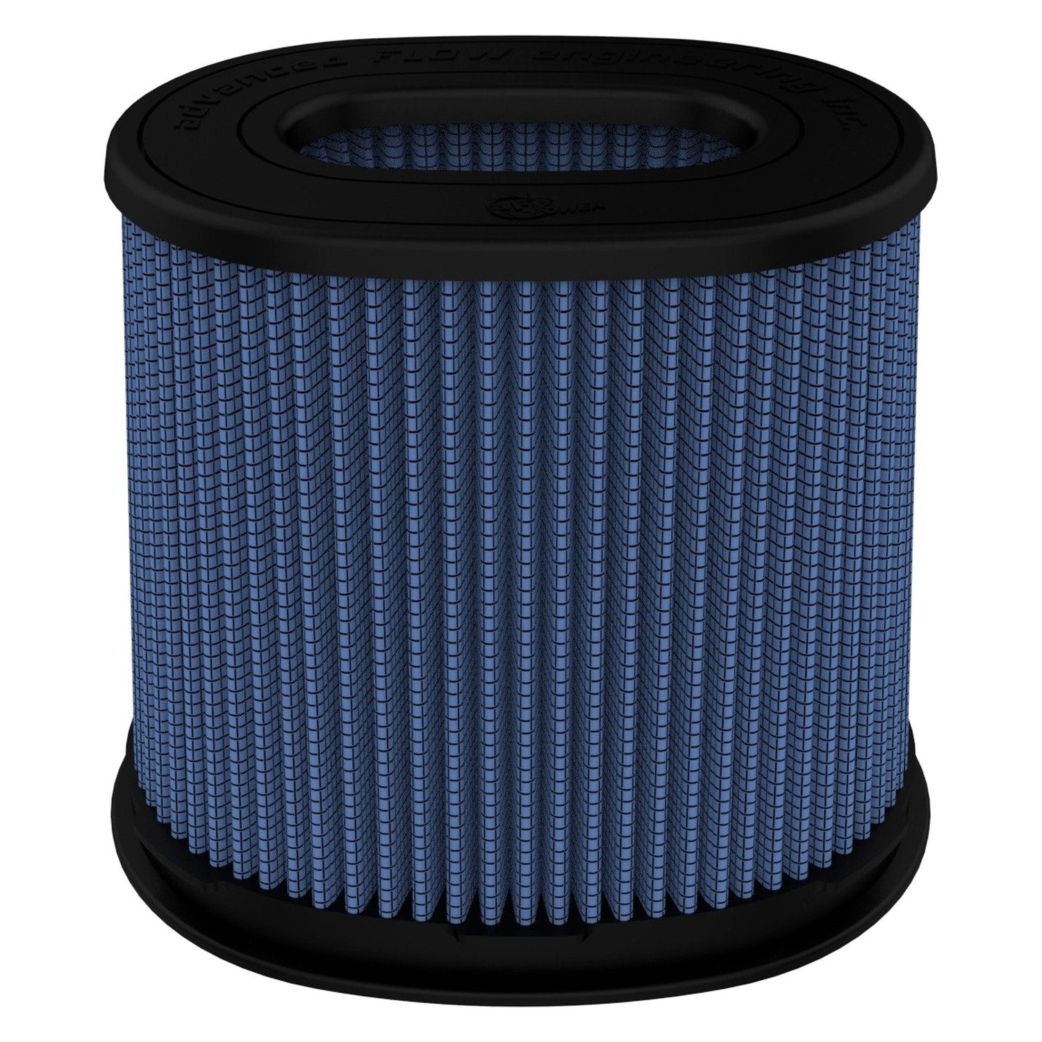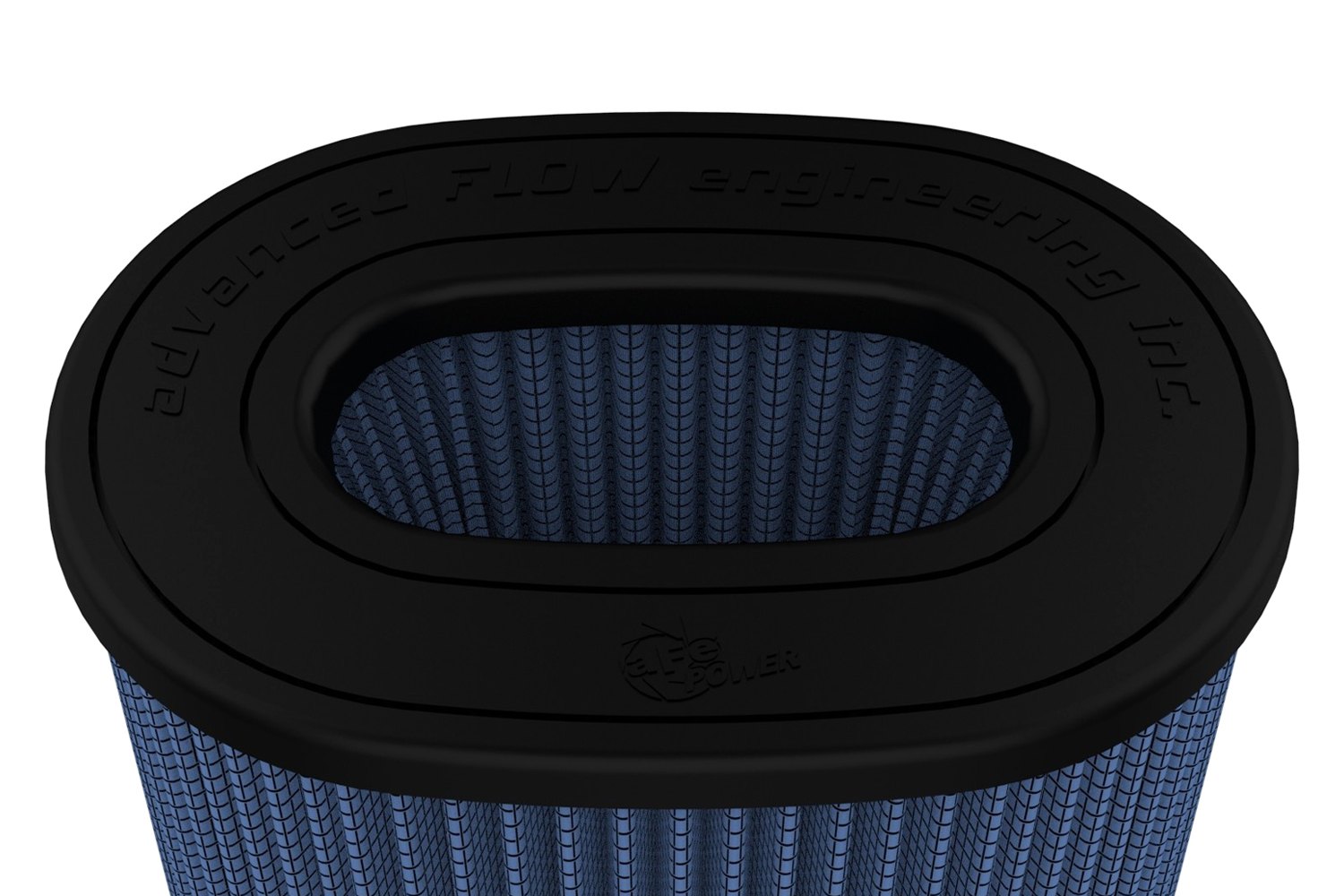 Magnum Flow® Pro 5R Oval Tapered Blue Air Filter (24-91156) by aFe®. These high flow Pro 5R air filters are constructed with 100% polyurethane on all sides and will out flow the stock paper filters for improved performance. Five layers of progressively finer cotton media provides maximum air flow. Washable and reusable for multiple cleaning cycles, the tall, open and evenly spaced filter pleats provide excellent dust holding capacity for longer service cycle between cleanings. An integrated urethane bump seal insures a tight, leak-free seal over the life of the filter. The aFe filter system increased air flow 25% over the factory air filter set increasing horsepower, torque and improving throttle response.