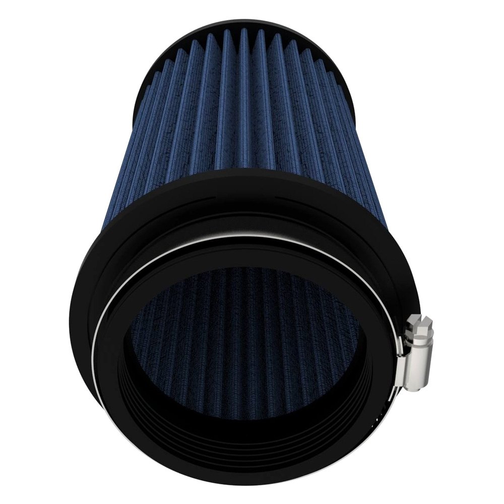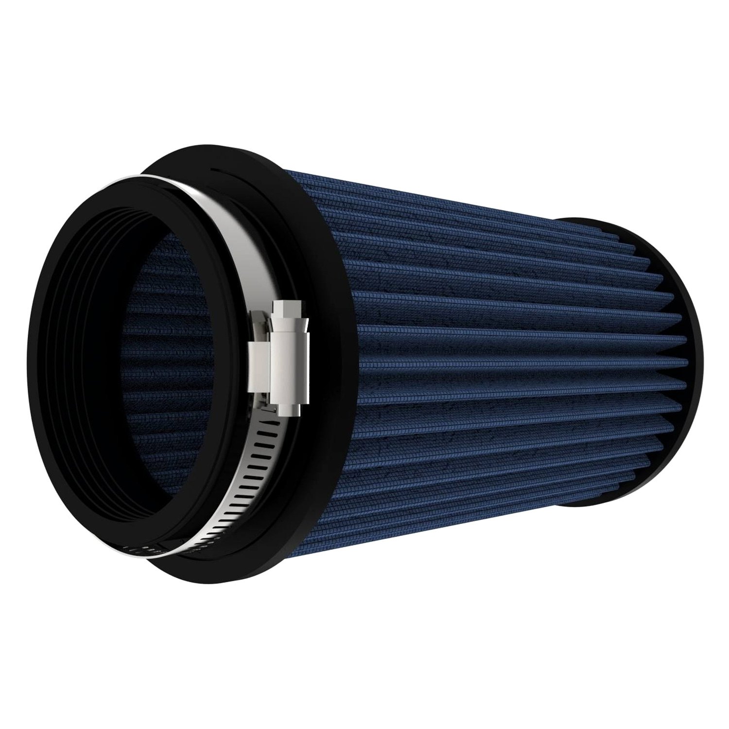 Magnum Flow® Pro 5R Round Blue Air Filter (24-90071) by aFe®. This high flow Pro 5R air filters are constructed with 100% polyurethane on all sides and will out flow the stock paper filters for improved performance. Five layers of progressively finer cotton media provides maximum air flow. Washable and reusable for multiple cleaning cycles, the tall, open and evenly spaced filter pleats provide excellent dust holding capacity for longer service cycle between cleanings. An integrated urethane bump seal insures a tight, leak-free seal over the life of the filter. The aFe filter system increased air flow 25% over the factory air filter set increasing horsepower, torque and improving throttle response.