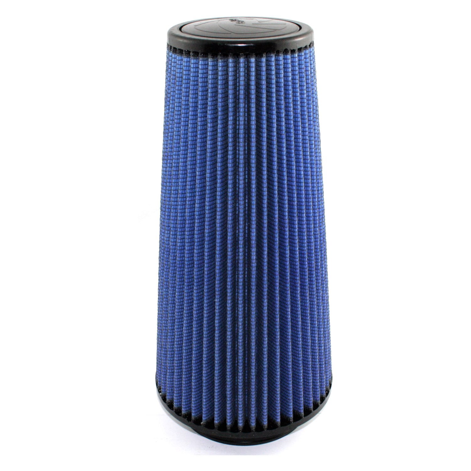 Magnum Flow® Pro 5R Round Tapered Blue Air Filter (24-40512) by aFe®. This high flow Pro 5R air filters are constructed with 100% polyurethane on all sides and will out flow the stock paper filters for improved performance. Five layers of progressively finer cotton media provides maximum air flow. Washable and reusable for multiple cleaning cycles, the tall, open and evenly spaced filter pleats provide excellent dust holding capacity for longer service cycle between cleanings. An integrated urethane bump seal insures a tight, leak-free seal over the life of the filter. The aFe filter system increased air flow 25% over the factory air filter set increasing horsepower, torque and improving throttle response.