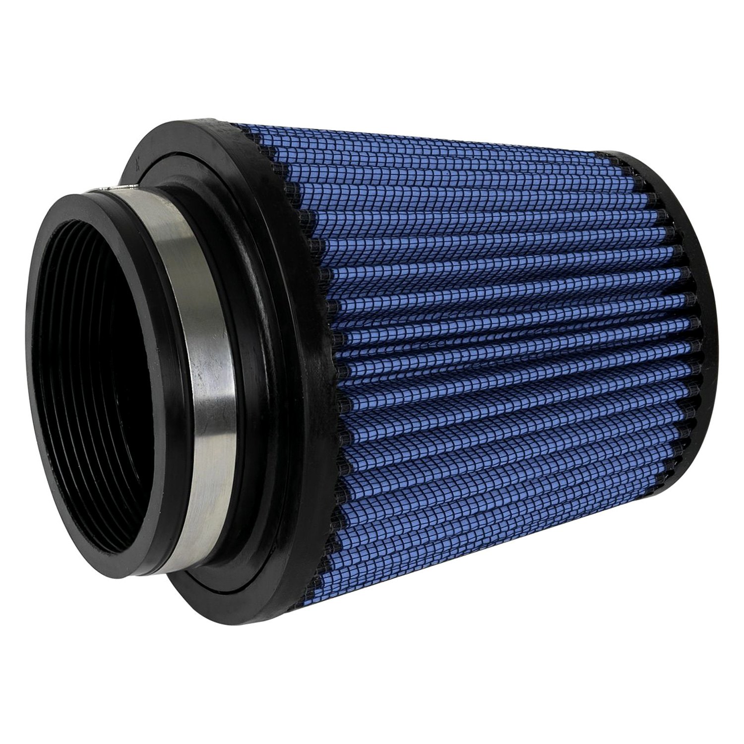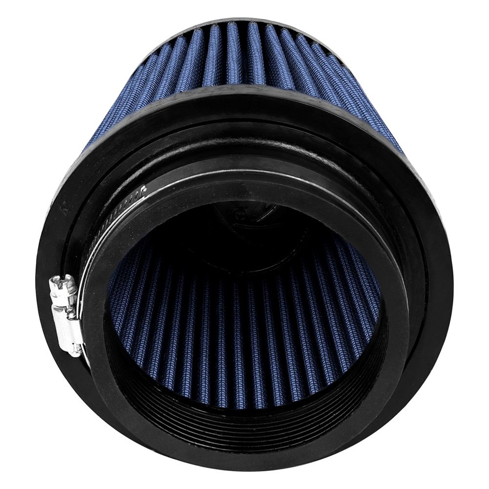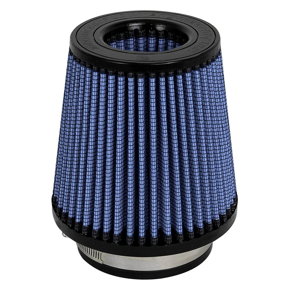 Magnum Flow® Pro 5R Round Tapered Blue Air Filter (24-91020) by aFe®. This high flow Pro 5R air filters are constructed with 100% polyurethane on all sides and will out flow the stock paper filters for improved performance. Five layers of progressively finer cotton media provides maximum air flow. Washable and reusable for multiple cleaning cycles, the tall, open and evenly spaced filter pleats provide excellent dust holding capacity for longer service cycle between cleanings. An integrated urethane bump seal insures a tight, leak-free seal over the life of the filter. The aFe filter system increased air flow 25% over the factory air filter set increasing horsepower, torque and improving throttle response.