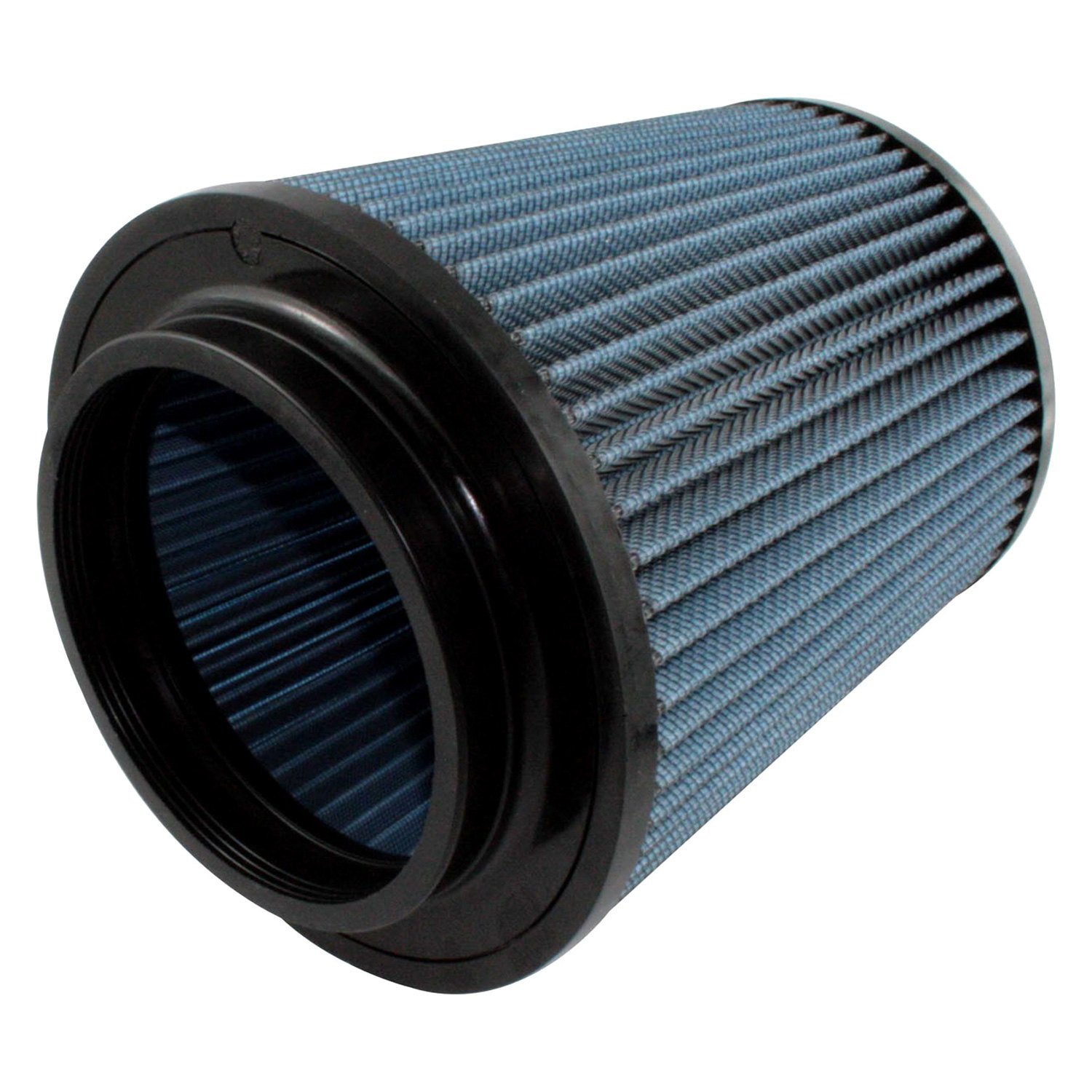 Magnum Flow® Pro 5R Round Tapered Blue Air Filter (24-91026) by aFe®. This high flow Pro 5R air filters are constructed with 100% polyurethane on all sides and will out flow the stock paper filters for improved performance. Five layers of progressively finer cotton media provides maximum air flow. Washable and reusable for multiple cleaning cycles, the tall, open and evenly spaced filter pleats provide excellent dust holding capacity for longer service cycle between cleanings. An integrated urethane bump seal insures a tight, leak-free seal over the life of the filter. The aFe filter system increased air flow 25% over the factory air filter set increasing horsepower, torque and improving throttle response.