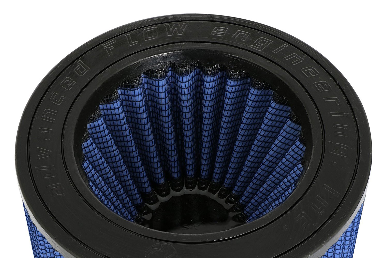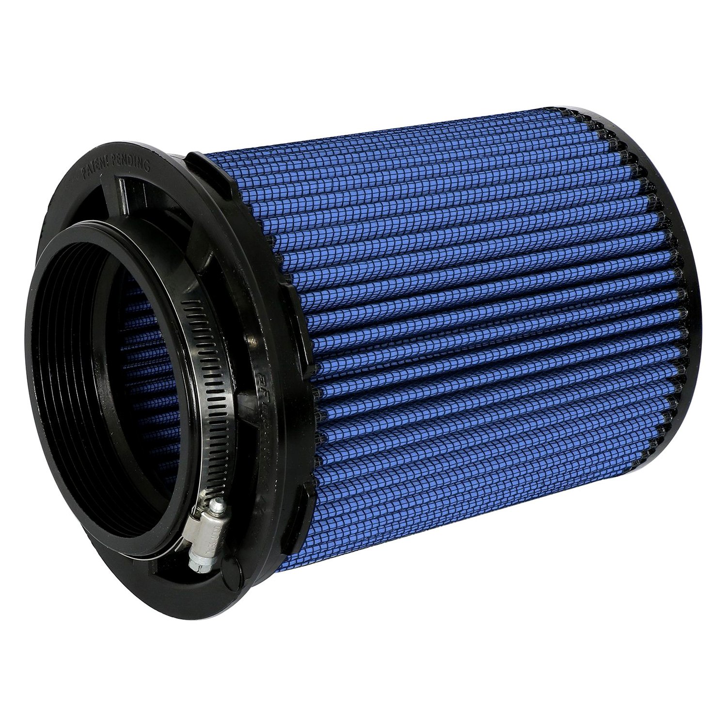 Magnum Flow® Pro 5R Round Tapered Blue Air Filter (24-91108) by aFe®. This high flow Pro 5R air filters are constructed with 100% polyurethane on all sides and will out flow the stock paper filters for improved performance. Five layers of progressively finer cotton media provides maximum air flow. Washable and reusable for multiple cleaning cycles, the tall, open and evenly spaced filter pleats provide excellent dust holding capacity for longer service cycle between cleanings. An integrated urethane bump seal insures a tight, leak-free seal over the life of the filter. The aFe filter system increased air flow 25% over the factory air filter set increasing horsepower, torque and improving throttle response.