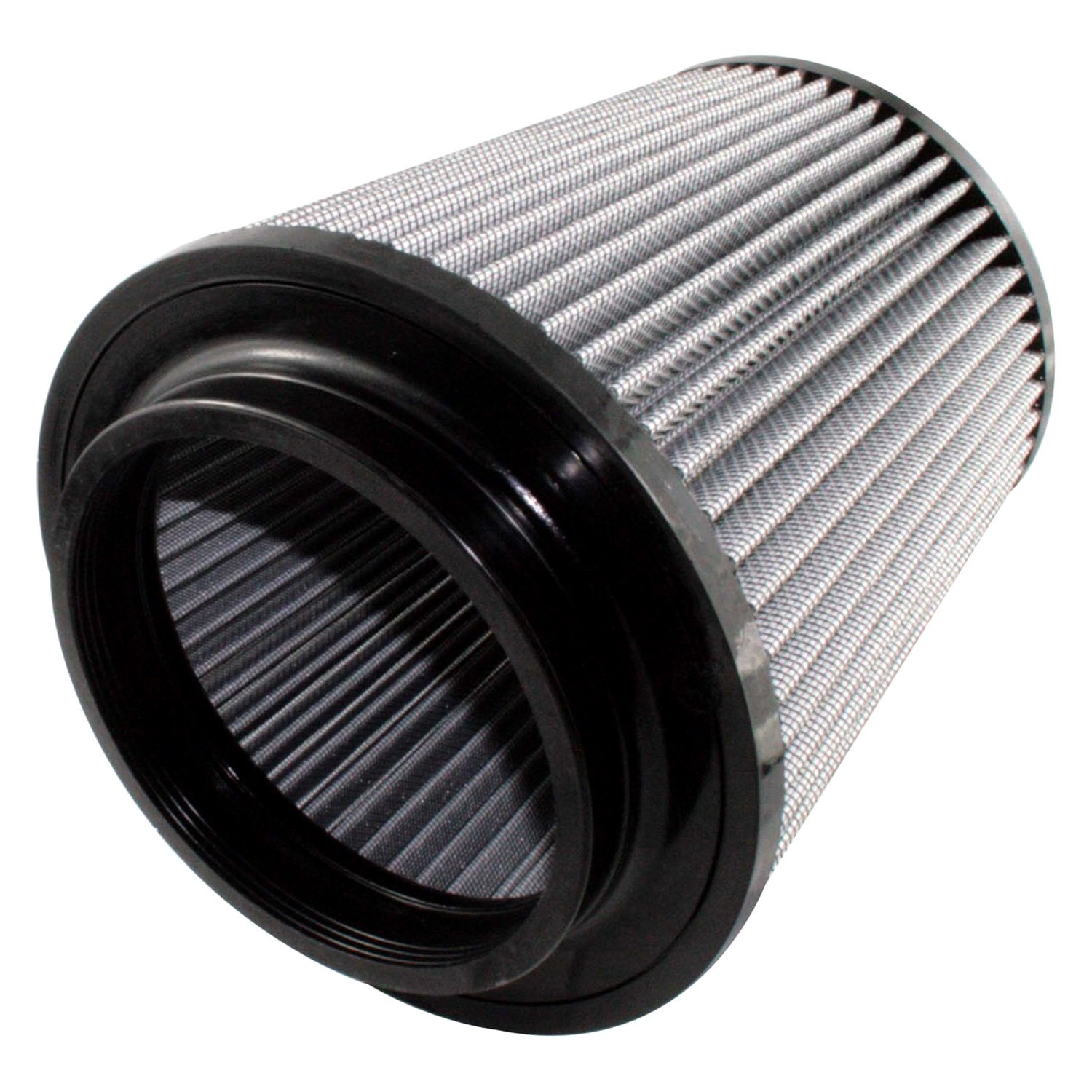 Magnum Flow® Pro Dry S Round Tapered Gray Air Filter (21-90021) by aFe®. This high flow Pro DRY S air filters are constructed with 100% polyurethane on all sides and will out flow the stock paper filters for improved performance. Layers of progressively finer synthetic media provides maximum convenience and can be cleaned with soap and water. Washable and reusable for multiple cleaning cycles, the tall, open and evenly spaced filter pleats provide excellent dust holding capacity for longer service cycle between cleanings. An integrated urethane bump seal insures a tight, leak-free seal over the life of the filter. The aFe filter system increased air flow 25% over the factory air filter set increasing horsepower, torque and improving throttle response.