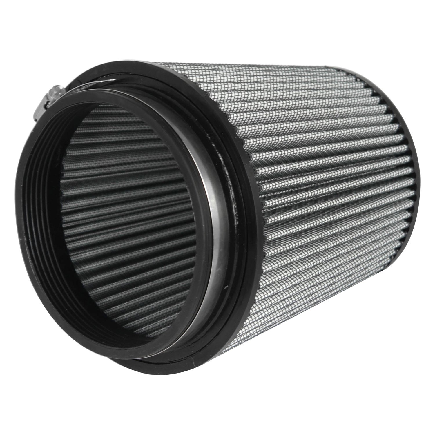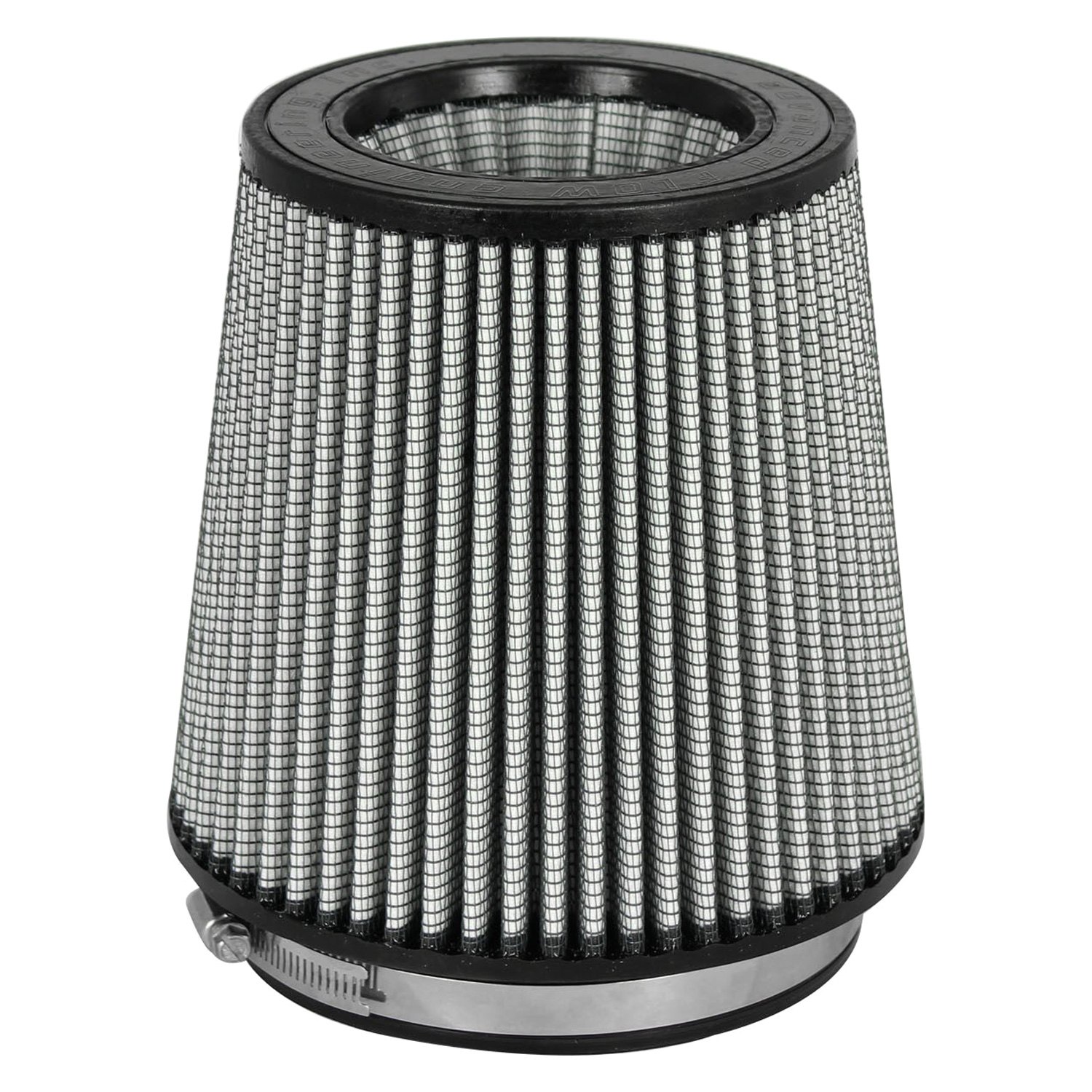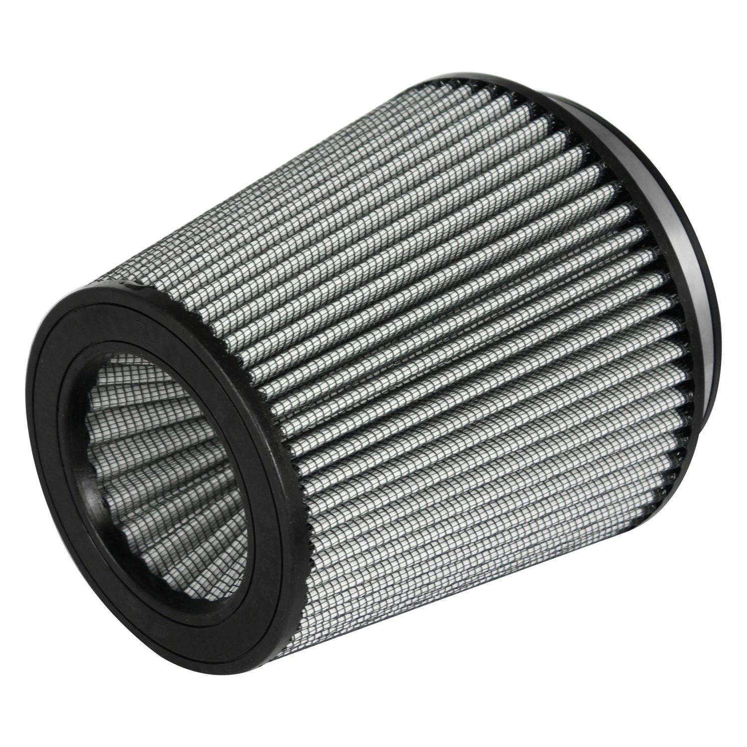 Magnum Flow® Pro Dry S Round Tapered Gray Air Filter (21-91031) by aFe®. This high flow Pro DRY S air filters are constructed with 100% polyurethane on all sides and will out flow the stock paper filters for improved performance. Layers of progressively finer synthetic media provides maximum convenience and can be cleaned with soap and water. Washable and reusable for multiple cleaning cycles, the tall, open and evenly spaced filter pleats provide excellent dust holding capacity for longer service cycle between cleanings. An integrated urethane bump seal insures a tight, leak-free seal over the life of the filter. The aFe filter system increased air flow 25% over the factory air filter set increasing horsepower, torque and improving throttle response.