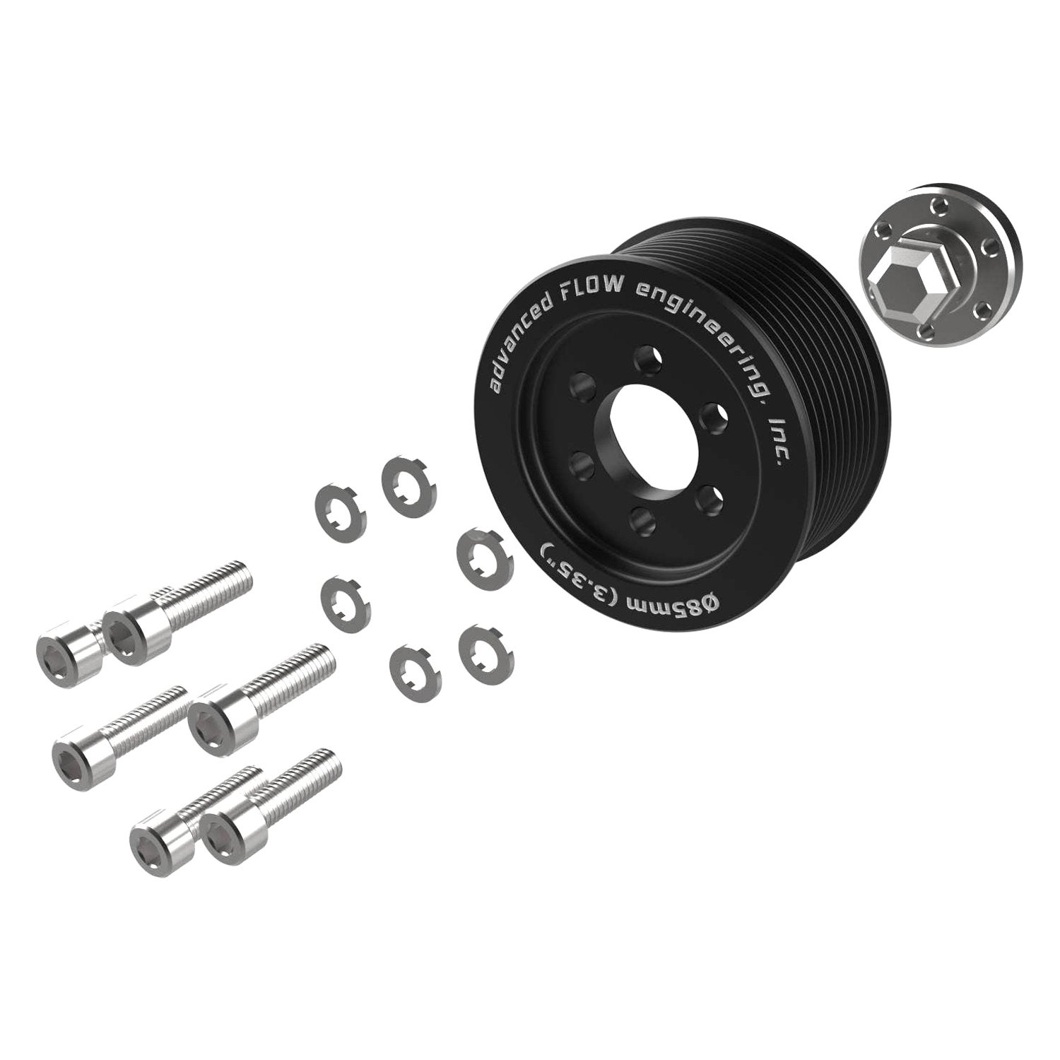 The engineers at aFe are not only skilled at making products that enable your engine to make more power, they're also skilled at finding and freeing up horsepower your engine is already making. Crankshaft-driven accessories like the alternator and power steering pump take horsepower to turn…horsepower that could be going to your rear wheels. aFe found that be reducing the size of the crankshaft accessory drive pulley, they could underdrive the accessory pulleys and reduce the power consumed by the accessories (parasitic loss), without affecting their operation. Your alternator, power steering and anything else driven by the crankshaft pulley still function effectively, but more power is now available for the driveline. You get more horsepower and torque for increased performance.
