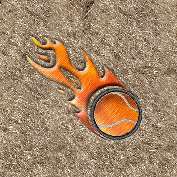 "Flaming Tennis Ball" Embroidered Logo (LS132) by DashMat®. Add a multicolor embroidered logo to your DashMat. This is no cheap monogram job. Created using state of the art computerized equipment, your DashMat product is carefully monogrammed in a complementary color, assuring lasting quality and beauty.