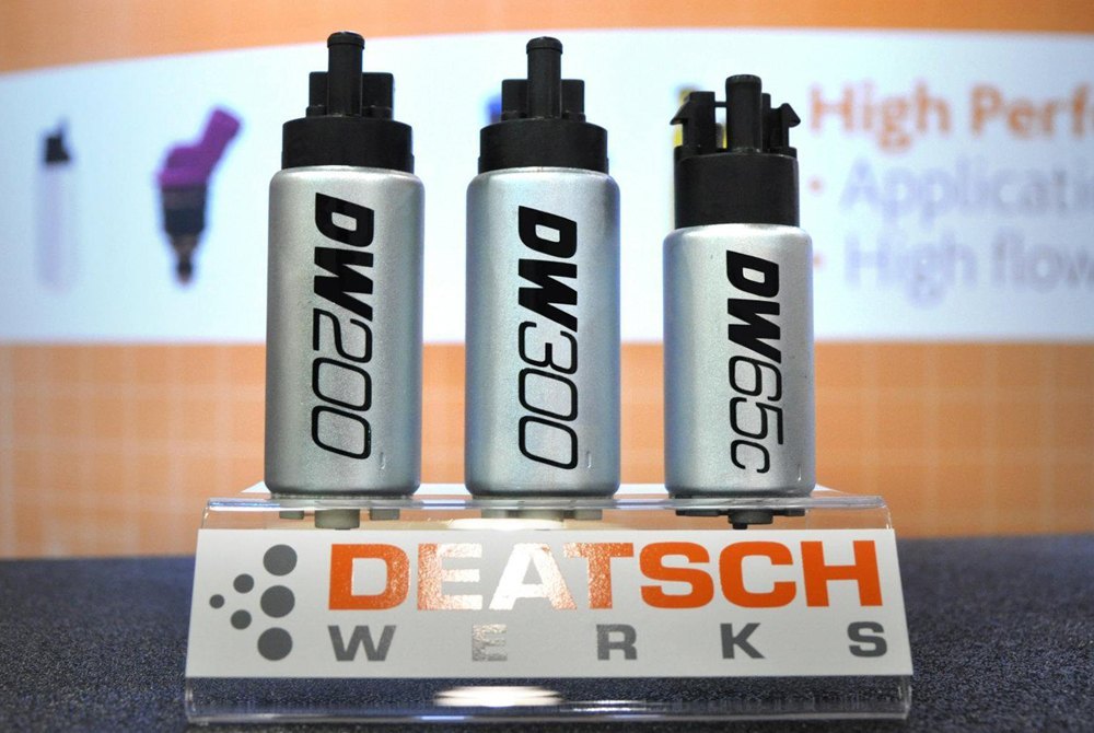 Today, the company's product line of fuel injectors includes over 250 applications and sizes that cover both Sport Compact and Modern Muscle applications. In 2010, DeatschWerks released its first fuel pump, the DW300-series in-tank fuel pump, and exhibited it at the SEMA show. Adhering to the company's philosophy of application specific solutions, the DW301 fuel pump is available with fitment kits for over 30 popular applications.