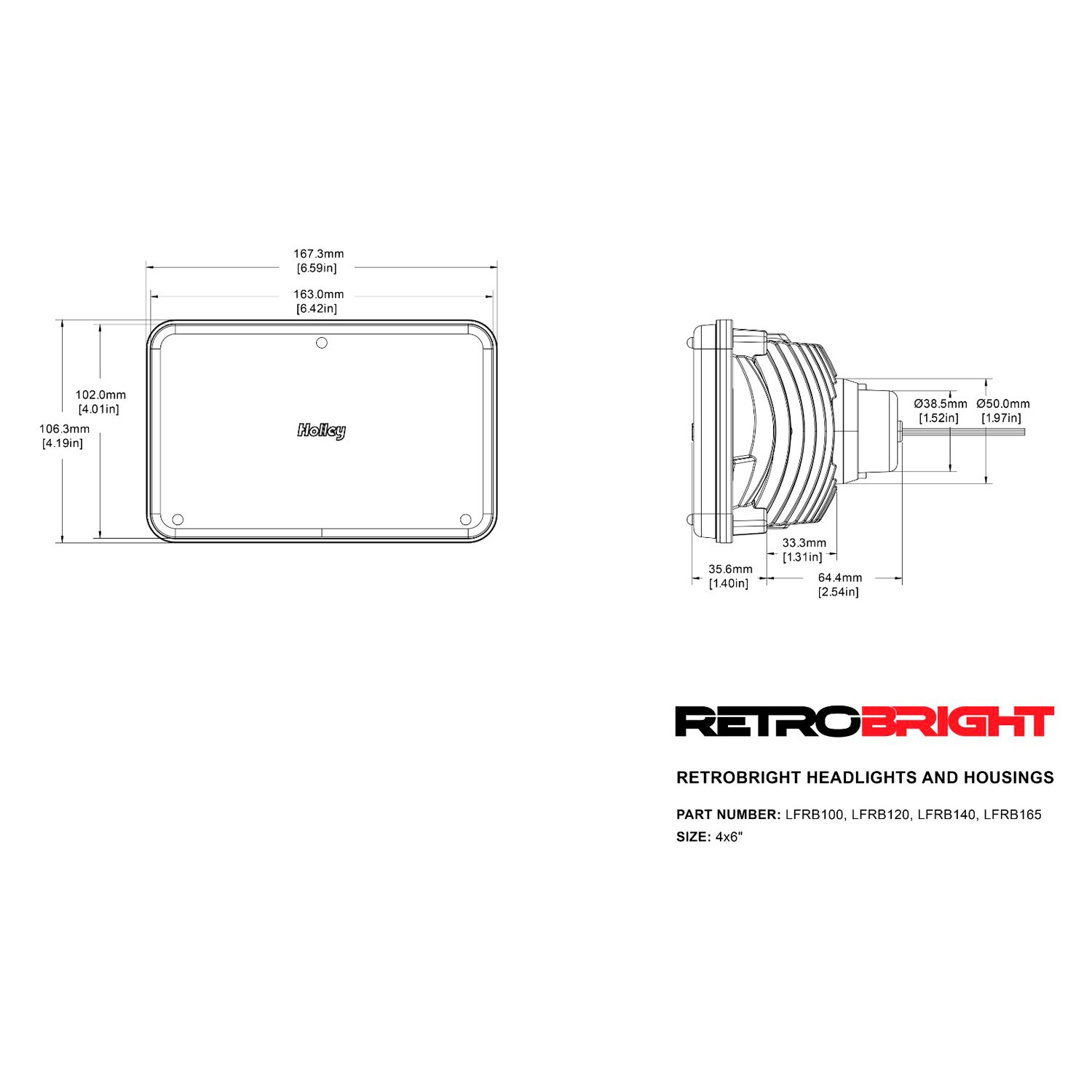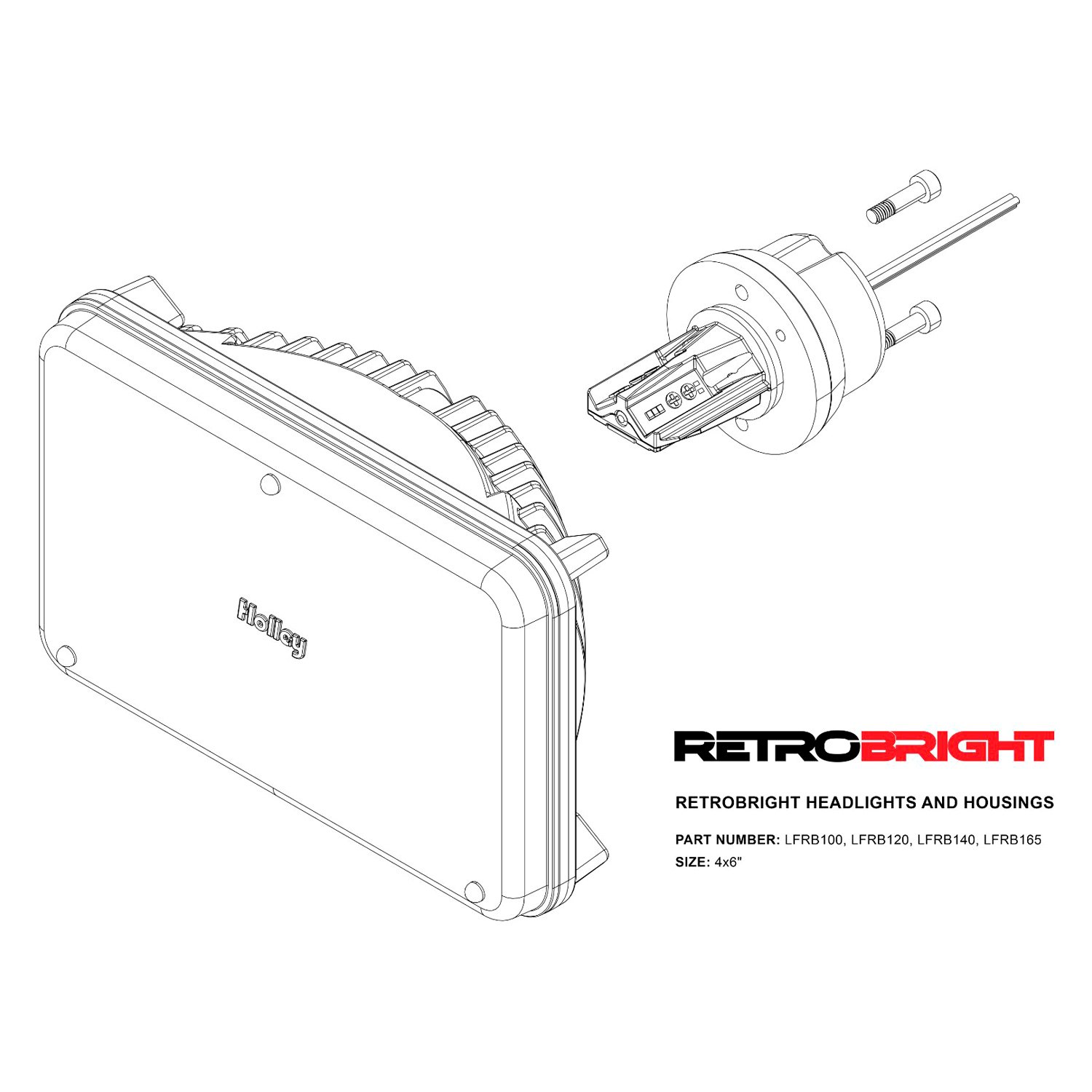 RetroBright™ 4x6" (165mm) Rectangular Chrome LED Headlight (LFRB121) by Holley RetroBright®. 1 Piece. Chrome housing, clear lens. Bulb: LED high beam (included). High Beam. This product is made of high-quality materials to serve you for years to come. This product designed using state-of-the-art technology and with customers in mind. It will meet your needs and deliver great quality at an affordable cost.