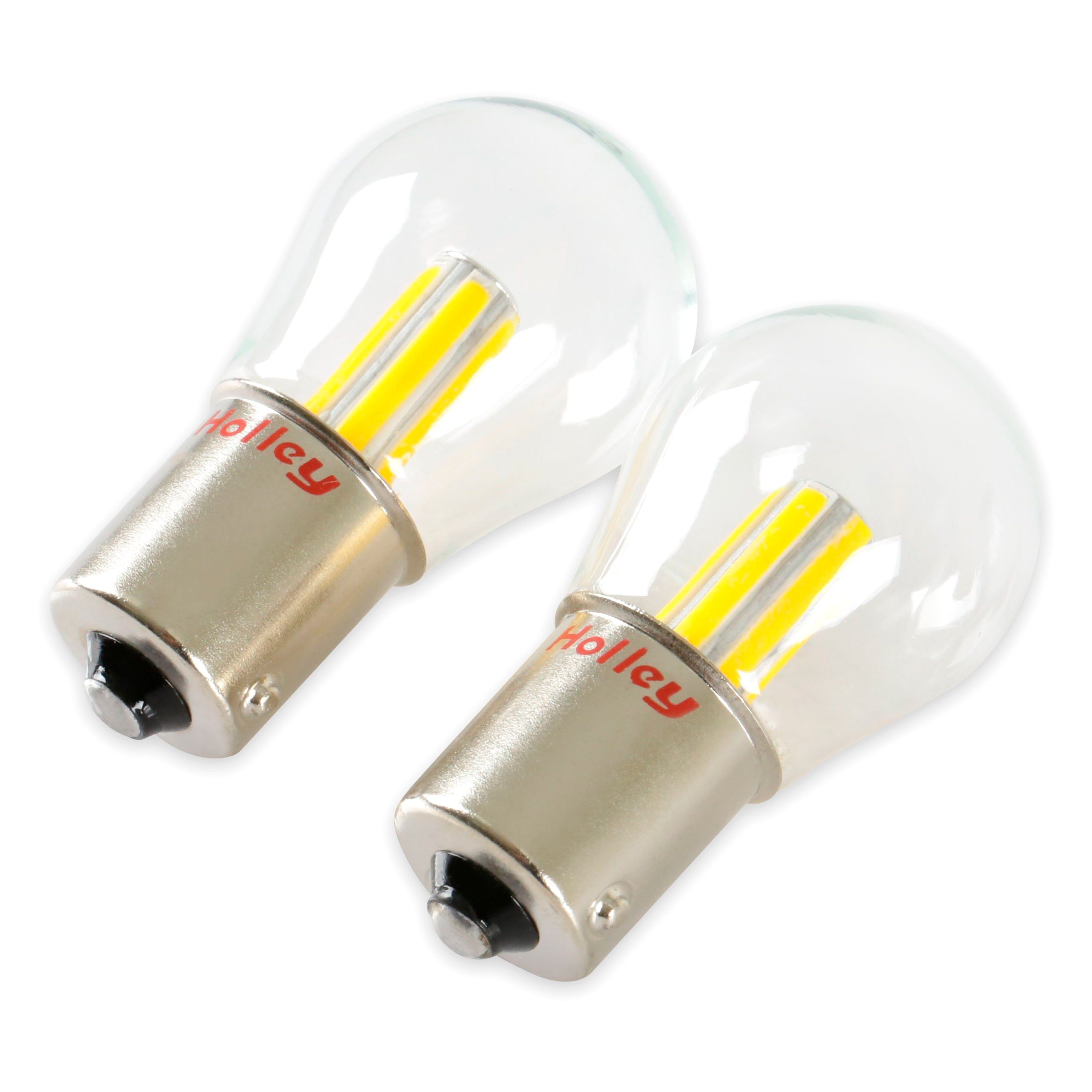 LED Bulbs (1156) (HLED15) by Holley RetroBright®. 1 Pair, amber color bulbs. We all love the look of bright LED lights and now you can round out your new RetroBright sealed beam headlights with this additional line of signal/marker LED bulbs. Adding style and safety all the way around your sweet ride.