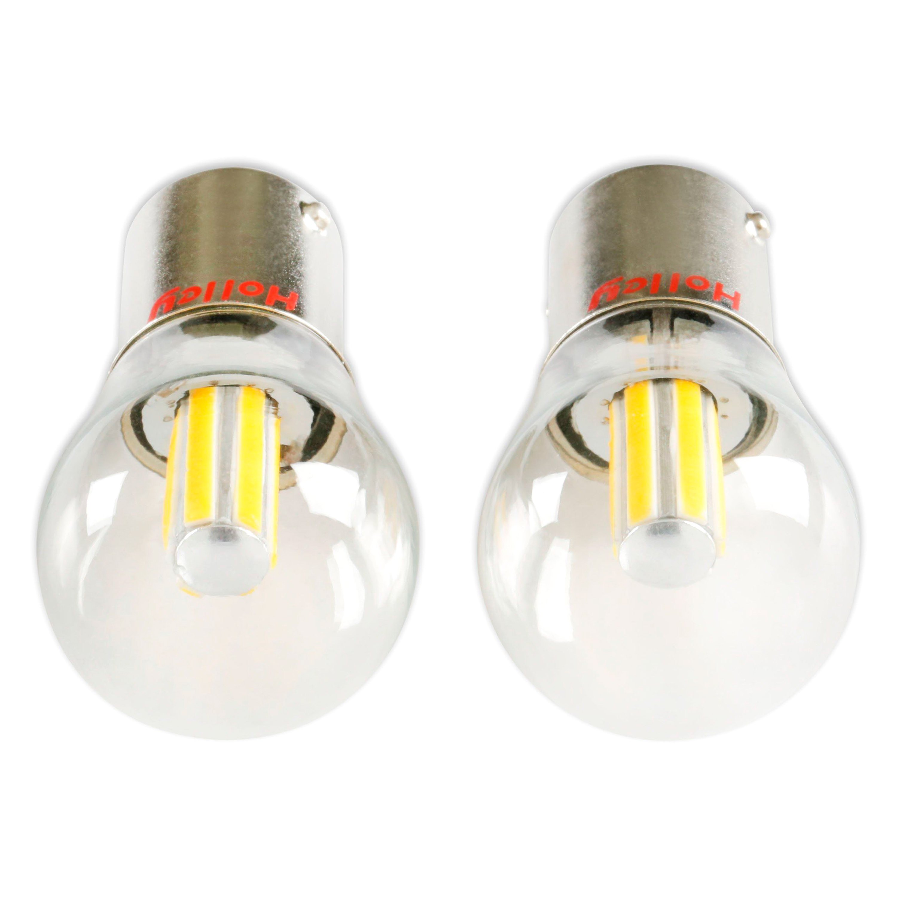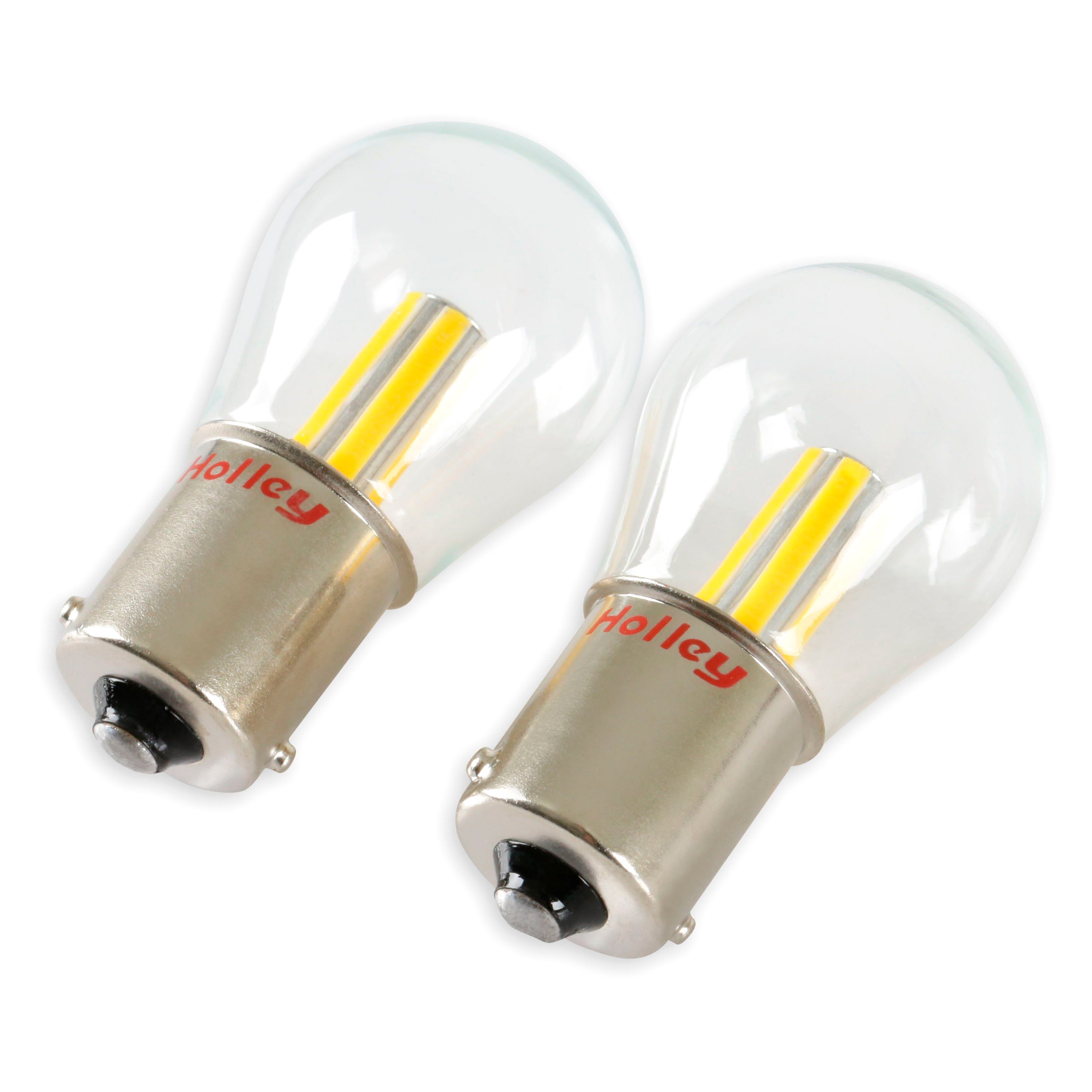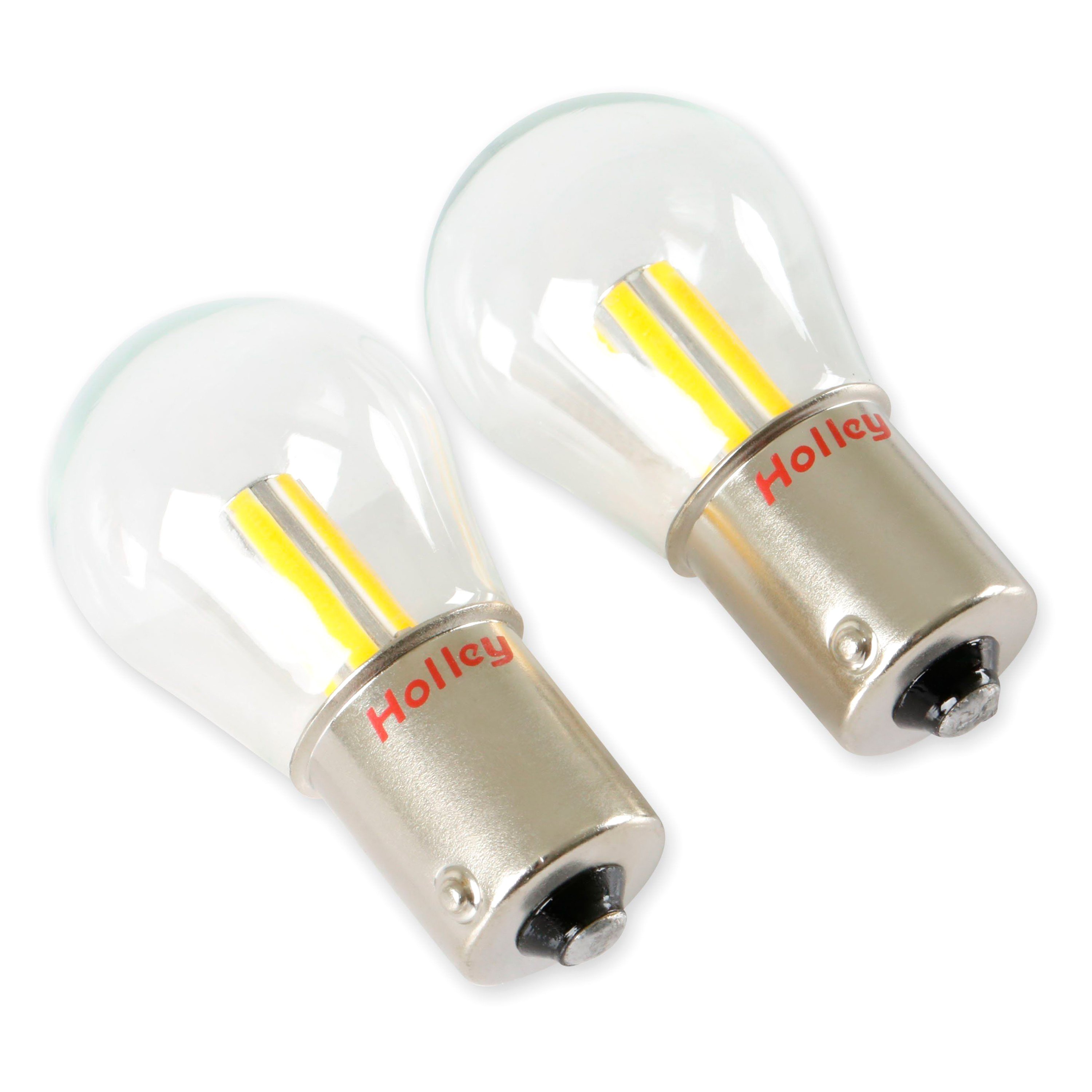 LED Bulbs (1156) (HLED05) by Holley RetroBright®. 1 Pair, classic white color bulbs, 3000K. We all love the look of bright LED lights and now you can round out your new RetroBright sealed beam headlights with this additional line of signal/marker LED bulbs. Adding style and safety all the way around your sweet ride.