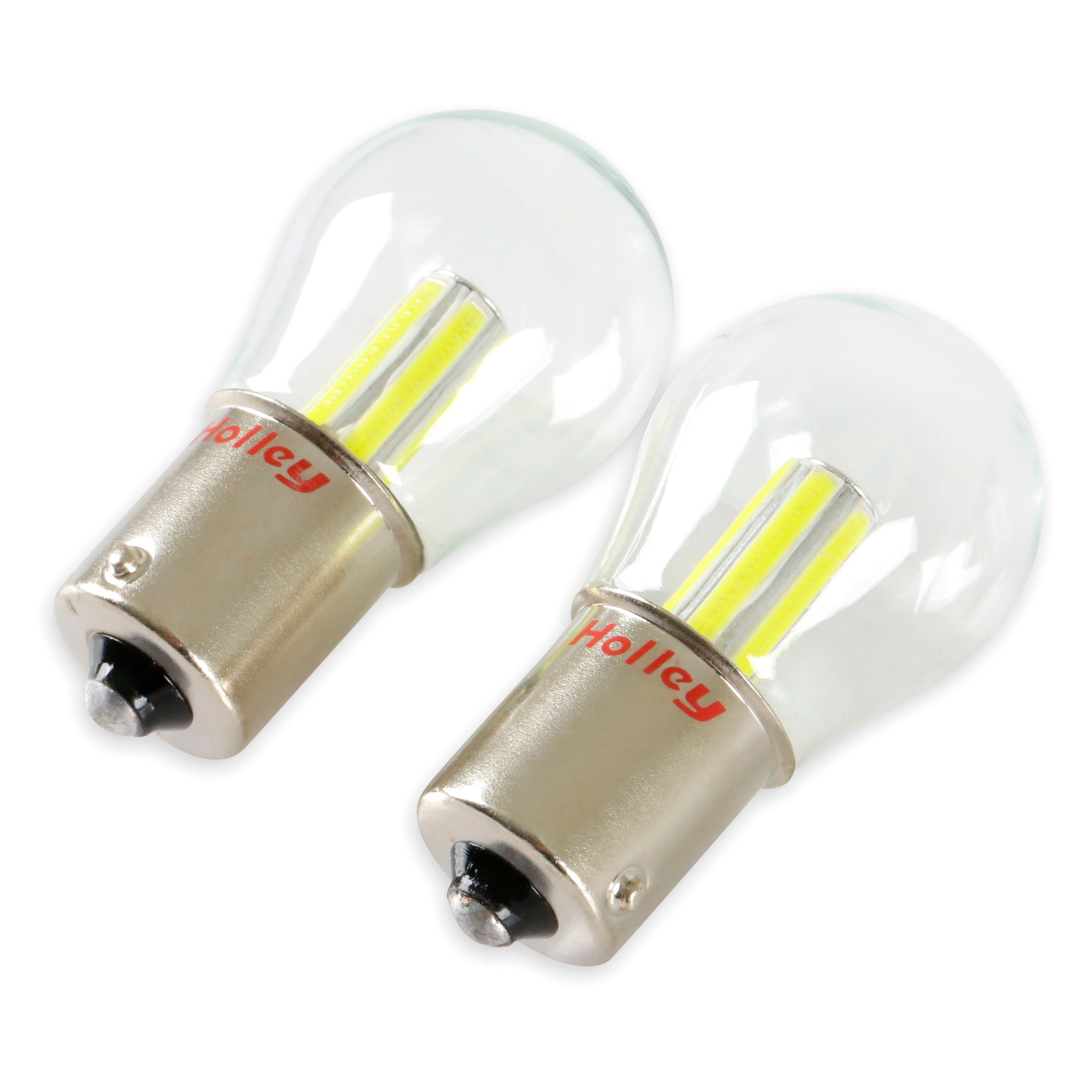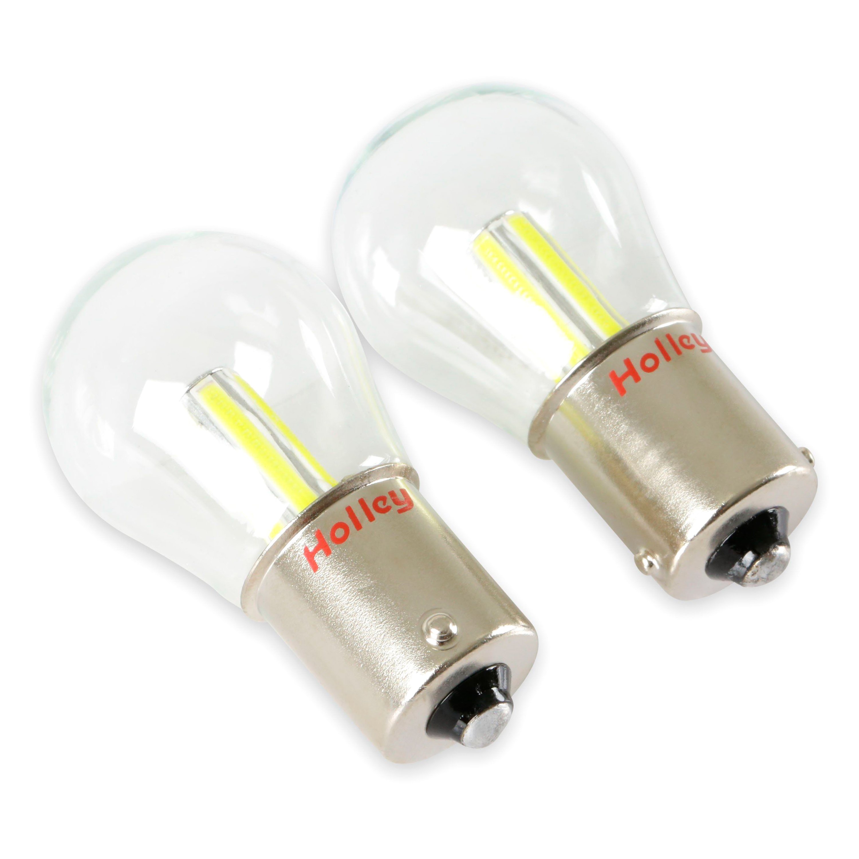LED Bulbs (1156) (HLED04) by Holley RetroBright®. 1 Pair, modern white color bulbs, 5700K. We all love the look of bright LED lights and now you can round out your new RetroBright sealed beam headlights with this additional line of signal/marker LED bulbs. Adding style and safety all the way around your sweet ride.