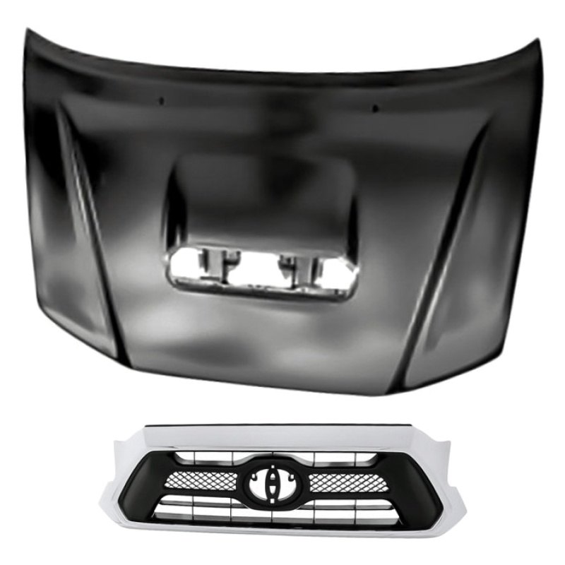 2-Piece (Hood Panel, Grille) (BNDL-213279) by Replacement. (CAPA Certified). Insert not included. When your hood's seen better days, you need a replacement that's up to the task. The Replacement brand's hoods are made to perfectly match your truck's original equipment. This panel will line up just right with your truck bed, no awkward gaps or alignment headaches. Durability is crucial for hoods. This one's built to handle the tough stuff, from the elements to impacts that come with hauling construction materials or moving furniture.