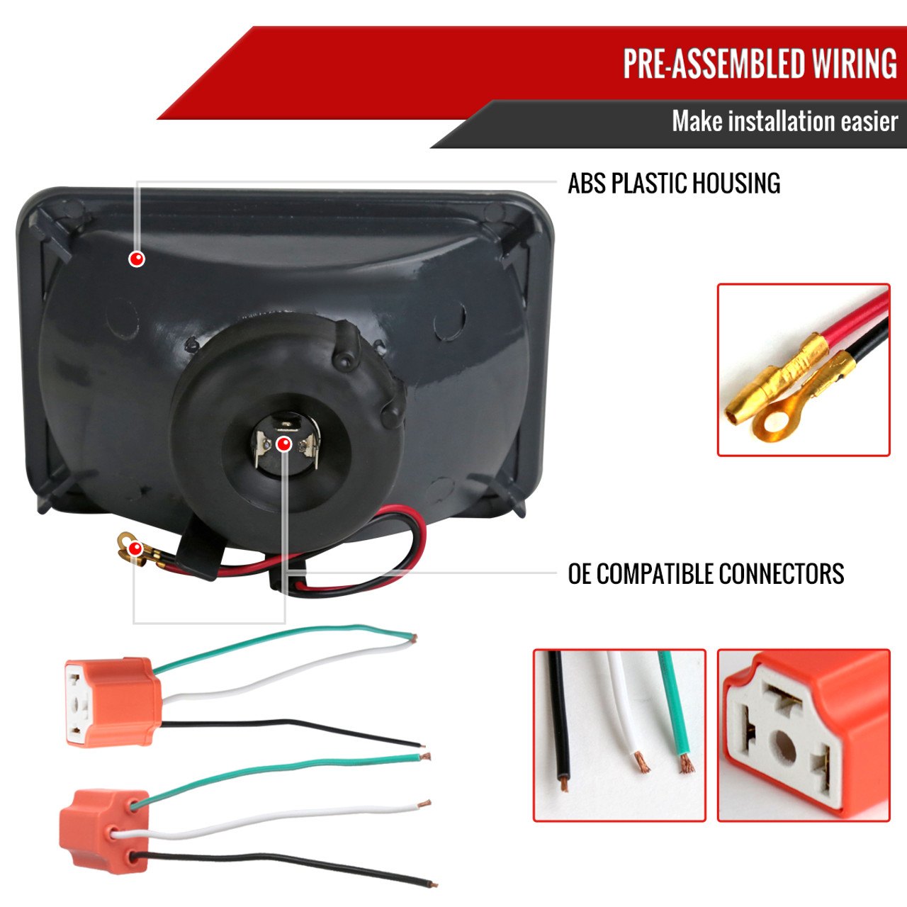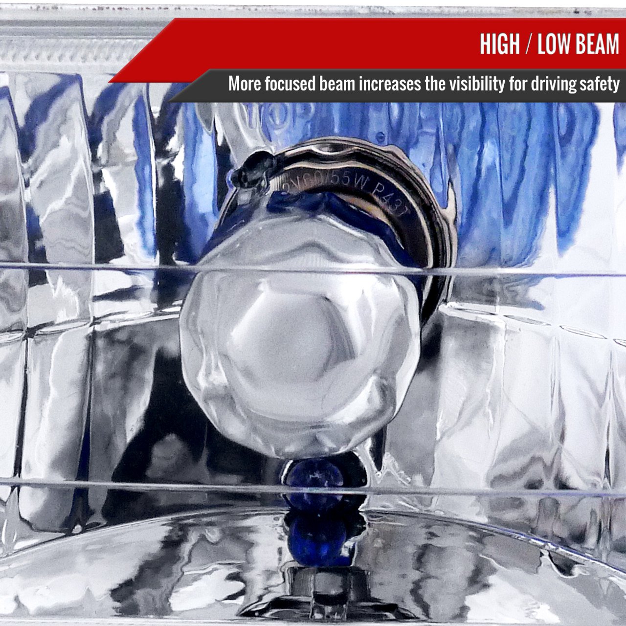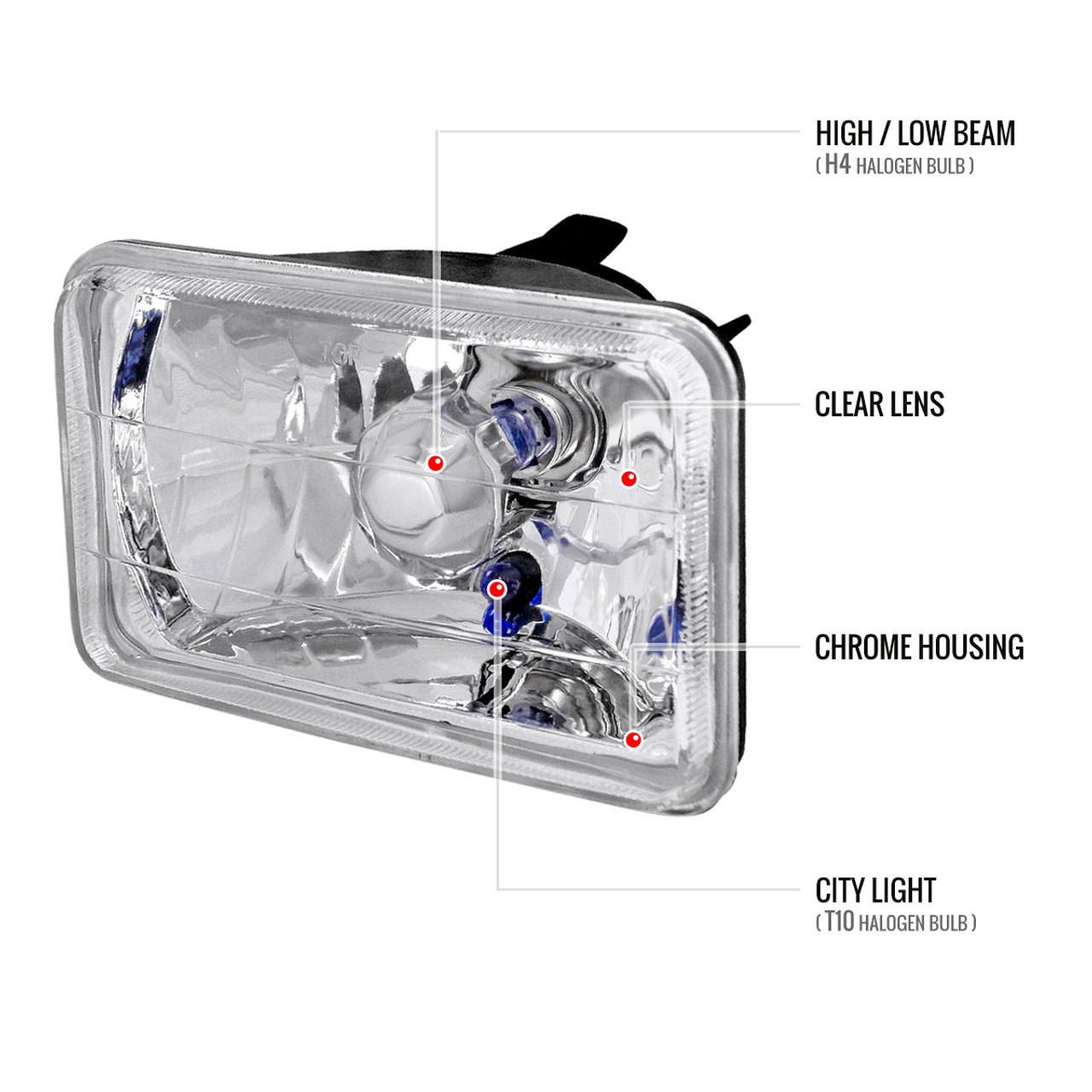 4x6" (165mm) Rectangular Driver and Passenger Side Chrome Euro Headlights by Spec-D®. 1 Pair. Chrome housing, clear lens. Bulbs: H4 high beam. Enjoy all the benefits of European technologies adapted to US lighting standards and driving conditions. These units not only provide improved illumination but also are the best way to bring an exclusive look to your precious classic vehicle.