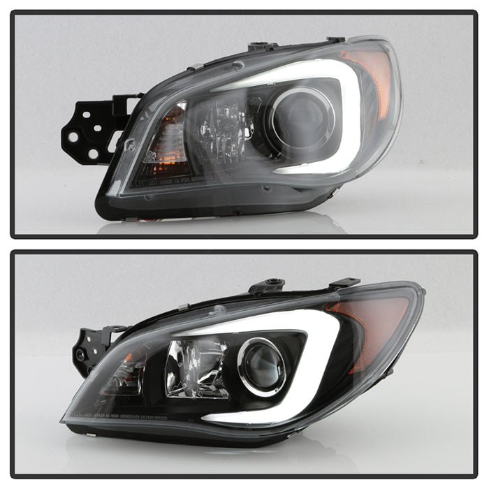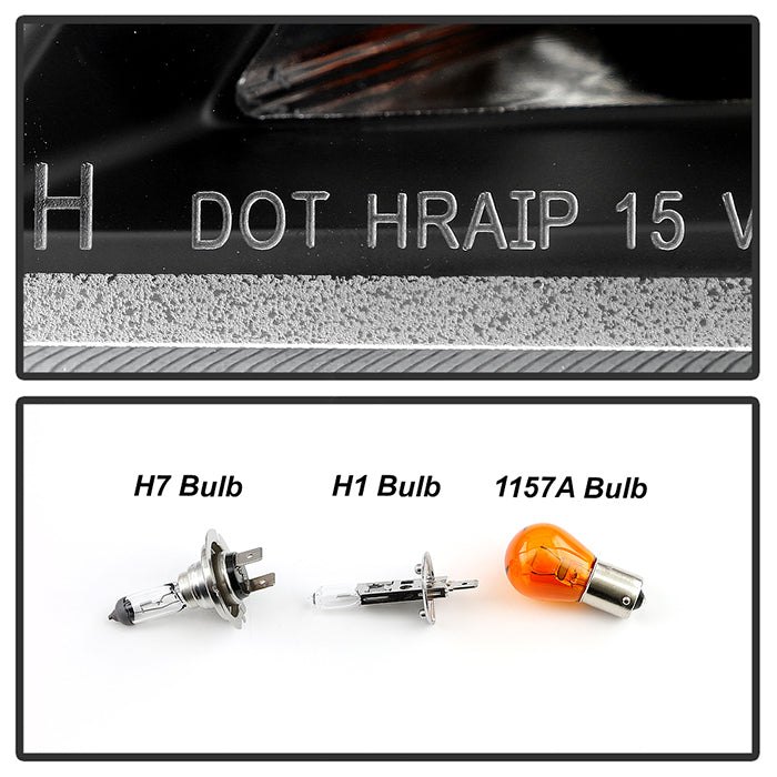 Signature Series Driver and Passenger Side Black LED DRL Bar Projector Headlights (PRO-YD-SWRX06-LBDRL-BK) by Spyder®. 1 Pair. Black housing, clear lens. Bulb: H7 low beam (included), H1 high beam (included), 1157A signal (included). Backed by a 1-year warranty. Provide your vehicle with an exclusive look it deserves with these projector headlights designed for stock lights direct replacement. The perfect blend of projector lights and DRL Bar will not only dramatically improve the appearance of your vehicle but also provide better illumination for greater driving safety and increased visibility to make it more conspicuous. Meets all federal regulations for street use.