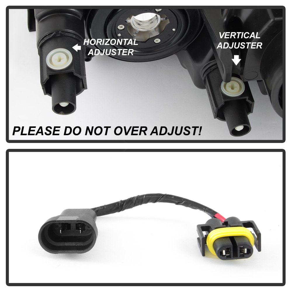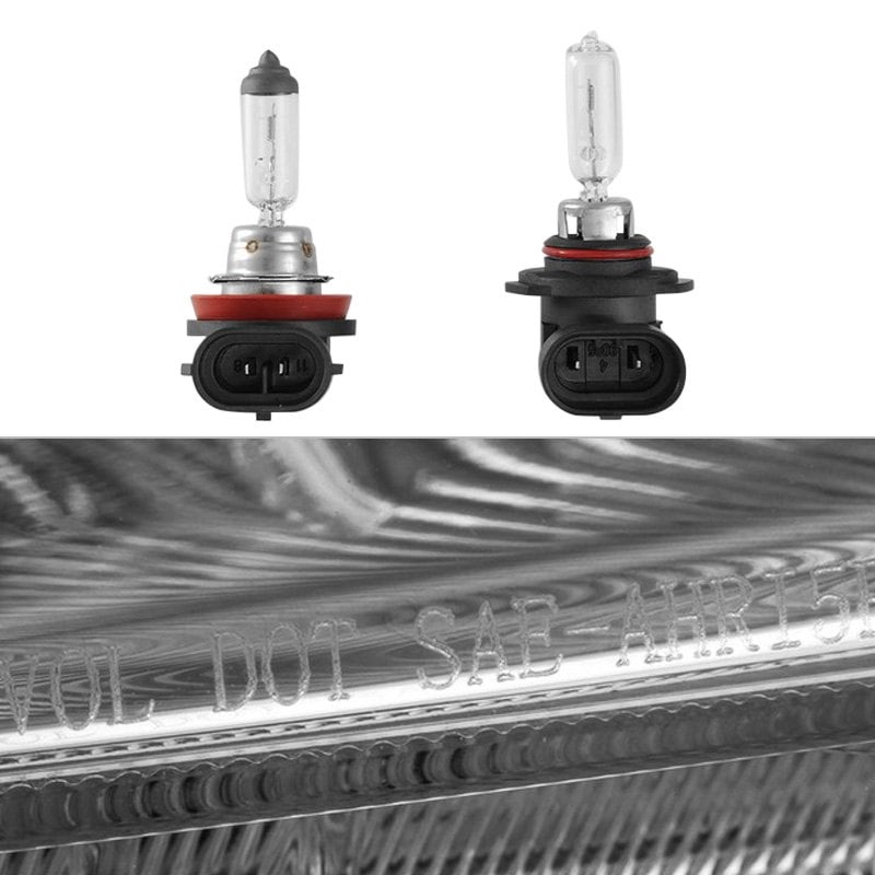 Driver and Passenger Side Chrome Projector Headlights by Spyder®. 1 Pair. Chrome housing, clear lens. Bulbs: H11 low beam, 9005 high beam. Backed by a 1-year warranty. Improve your vision and your vehicle’s appearance with these bolt-on headlight assemblies. The projector beam headlights will produce a sharper, more focused beam of light for safer driving at night, and the custom headlight housing will give your ride an exclusive, unique look. Meets all federal regulations for street use.