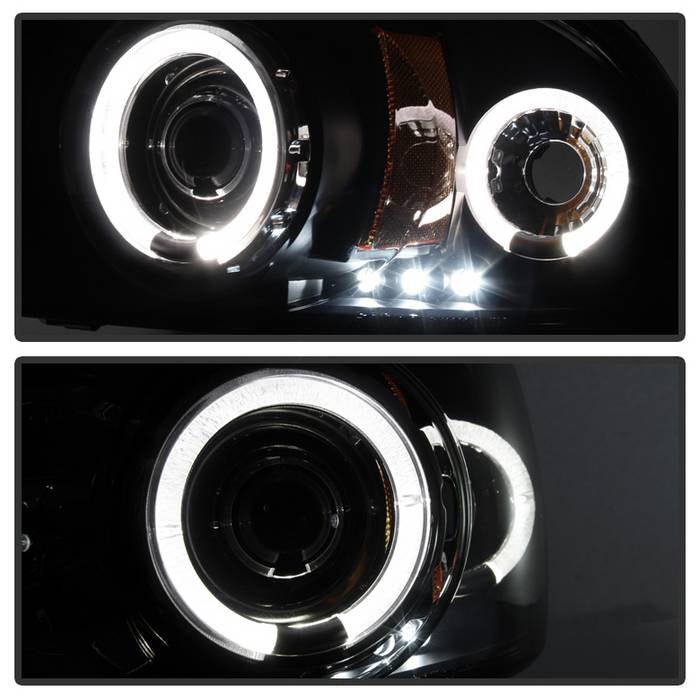 Signature Series Driver and Passenger Side Black Halo Projector Headlights with Parking LEDs (PRO-YD-DDAK97-BK) by Spyder®. 1 Pair. Black housing, clear lens. Bulb: 9006 (HB4) low beam (included), H1 high beam (included). Backed by a 1-year warranty. Improve your vision and your vehicle’s appearance with these bolt-on headlight assemblies. The projector beam headlights will produce a sharper, more focused beam of light for safer driving at night, the bright Halos and LED lights will make your vehicle more visible to other drivers, and the Halos, LEDs and custom headlight housing will give your ride an exclusive, unique look. Meets all federal regulations for street use.