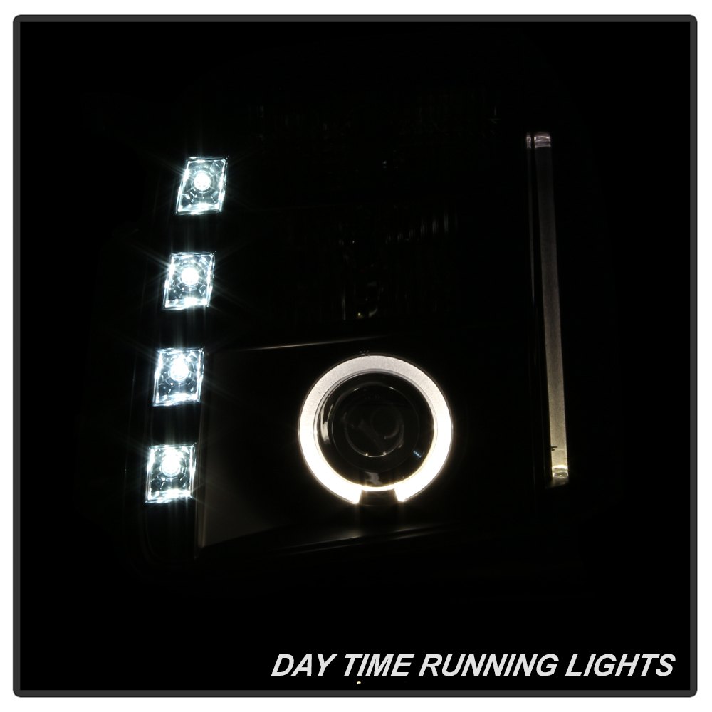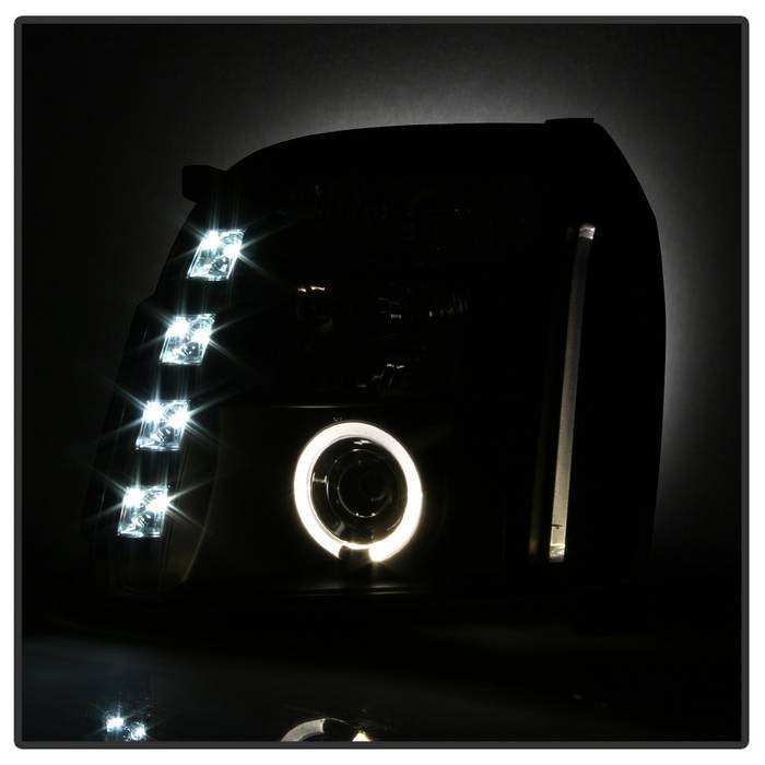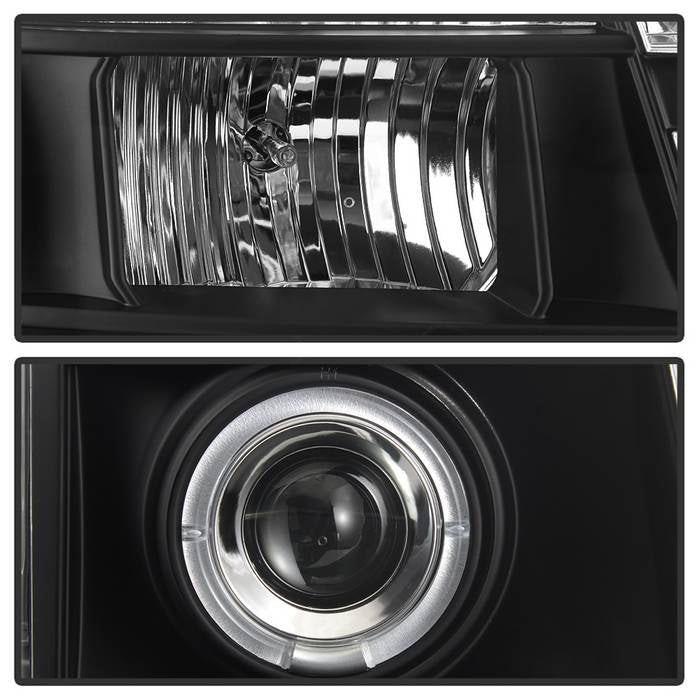 Signature Series Driver and Passenger Side Black Halo Projector Headlights with Parking LEDs (PRO-YD-GY07-HL-BK) by Spyder®. 1 Pair. Black housing, clear lens. Bulb: H1 low beam (included), H1 high beam (included). Backed by a 1-year warranty. Improve your vision and your vehicle’s appearance with these bolt-on headlight assemblies. The projector beam headlights will produce a sharper, more focused beam of light for safer driving at night, the bright Halos and LED lights will make your vehicle more visible to other drivers, and the Halos, LEDs and custom headlight housing will give your ride an exclusive, unique look. Meets all federal regulations for street use.