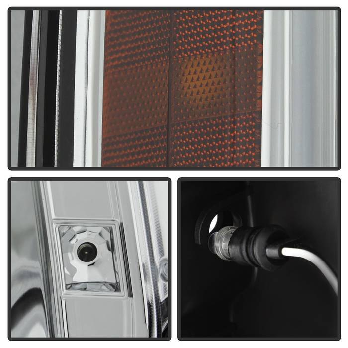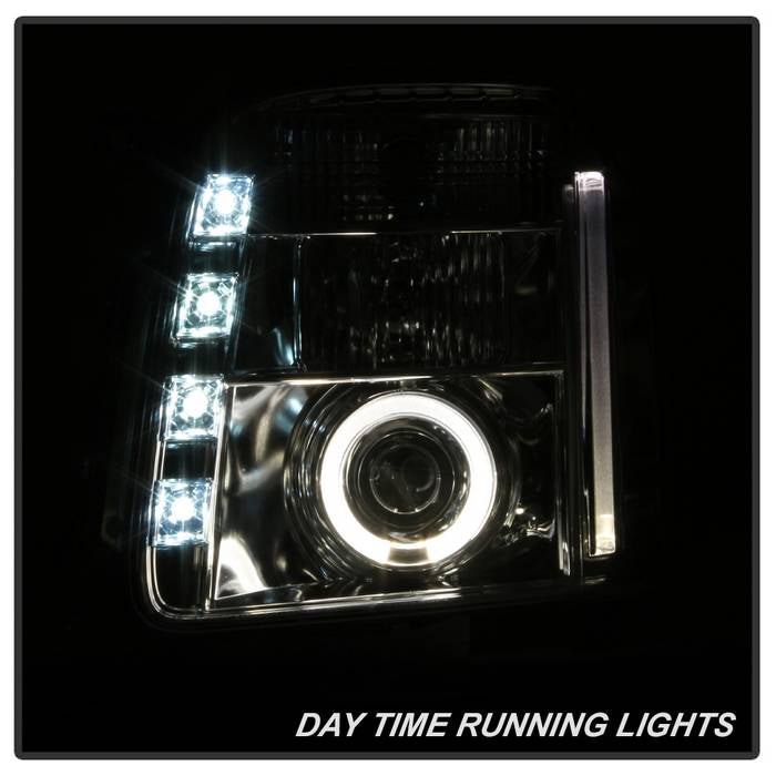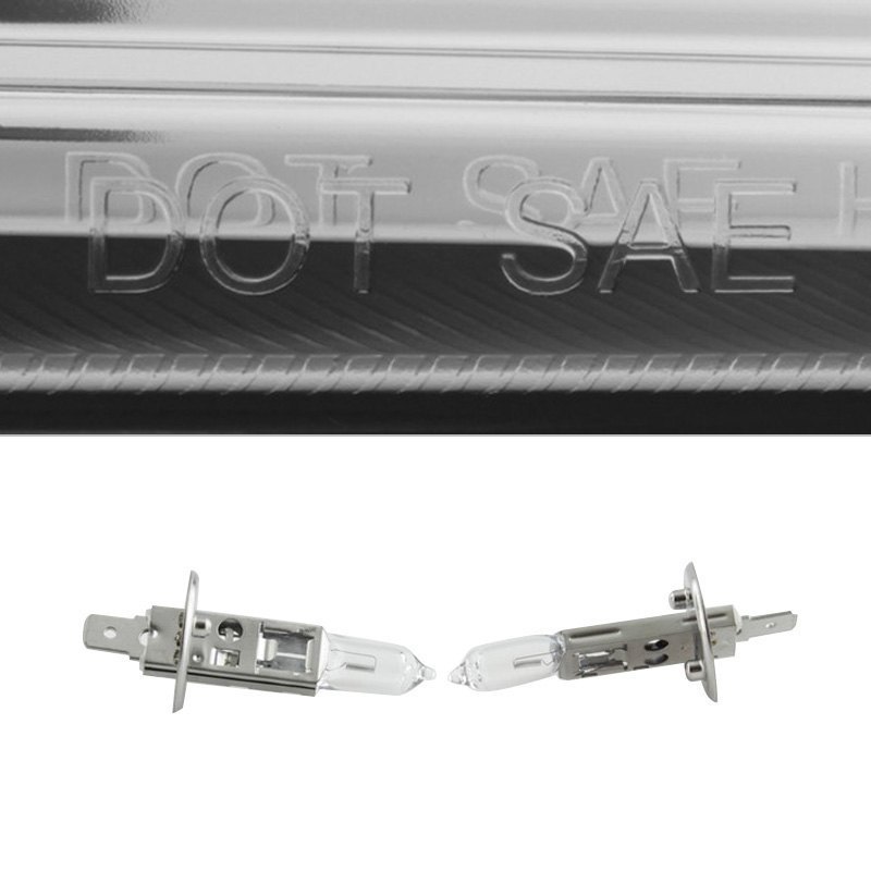 Signature Series Driver and Passenger Side Chrome Halo Projector Headlights with Parking LEDs (PRO-YD-GY07-HL-C) by Spyder®. 1 Pair. Chrome housing, clear lens. Bulb: H1 low beam (included), H1 high beam (included). Backed by a 1-year warranty. Improve your vision and your vehicle’s appearance with these bolt-on headlight assemblies. The projector beam headlights will produce a sharper, more focused beam of light for safer driving at night, the bright Halos and LED lights will make your vehicle more visible to other drivers, and the Halos, LEDs and custom headlight housing will give your ride an exclusive, unique look. Meets all federal regulations for street use.